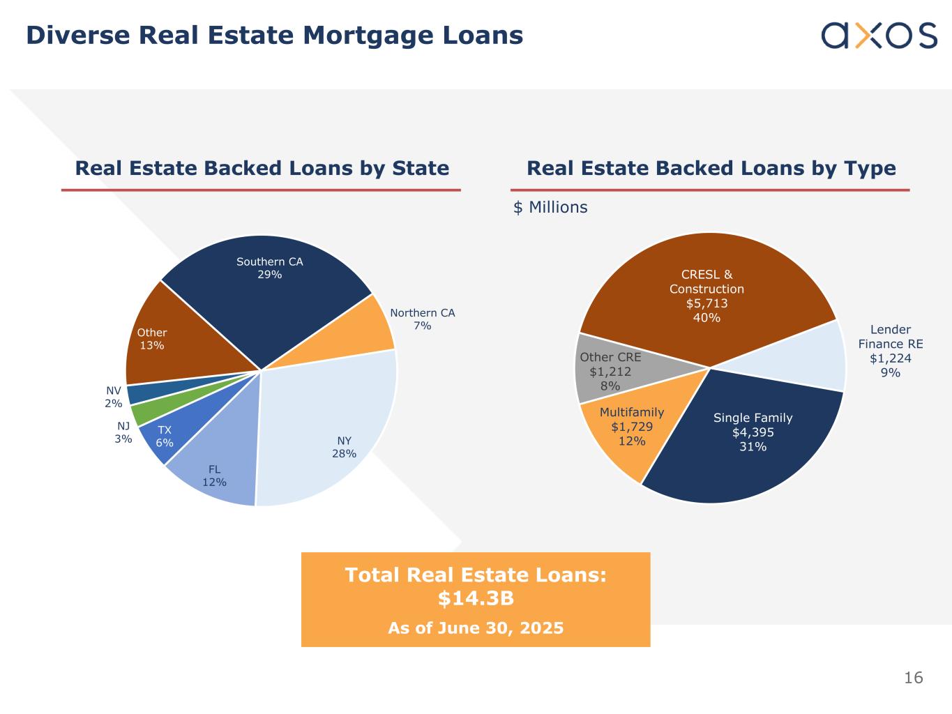 16种不同的房地产抵押贷款房地产支持贷款按州划分的房地产贷款总额:截至2025年6月30日的14.3B美元房地产支持贷款按类型划分的南方加利福尼亚州 29%北方加利福尼亚州 7% NY 28% FL 12% TX 6% NJ 3% NV 2%其他13%单身家庭$ 4,39531% Multifamily $ 1,72912%其他CRE $ 1,2128% CRESL & Construction $ 5,71340%贷方融资RE $ 1,2249% $百万