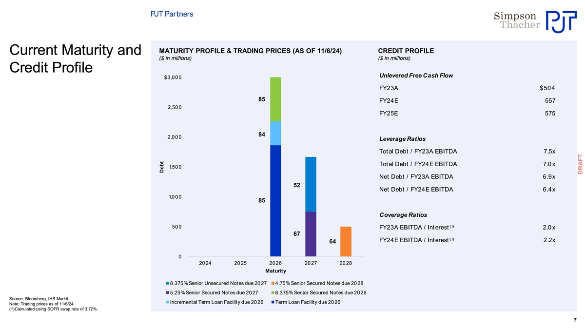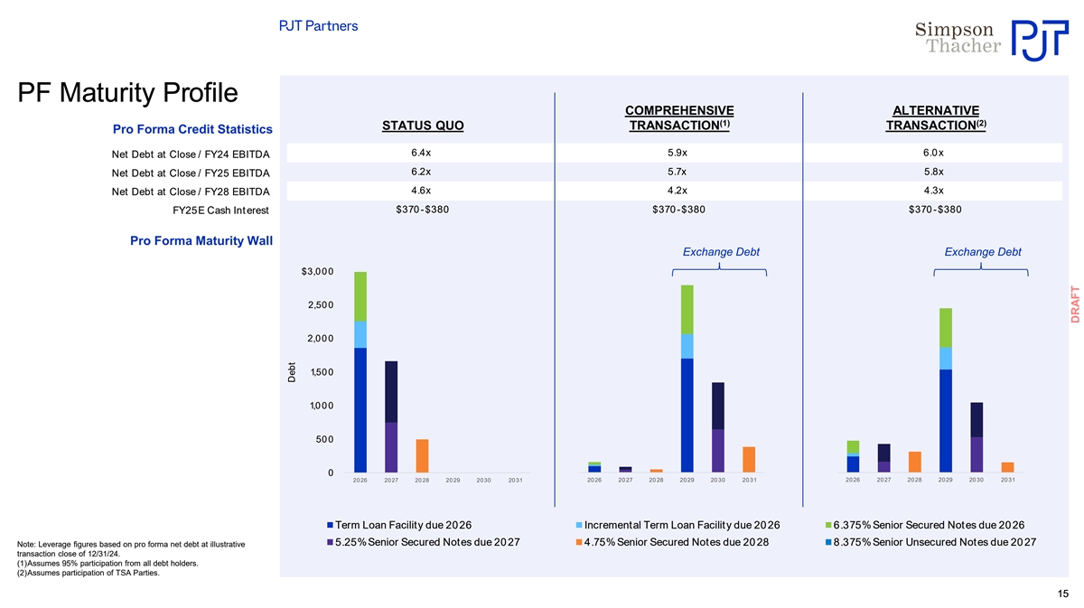 PF到期情况综合备选方案(1)(2)现状交易交易备考信用统计6.4x 5.9x 6.0x收盘净债务/24财年EBITDA 6.2x 5.7x 5.8x收盘净债务/25财年EBITDA 4.6x 4.2x 4.3x收盘净债务/28财年EBITDA $ 370-$ 380 $ 370-$ 380 FY25E现金利息备考到期Wall Exchange Debt Exchange Debt Debt $ 3,0002,5002,0001,0001,0005000202620272028202820292030203120262027202820272027202820272027202820272028202720282027207207207207207207207207207207207207207207207207207207207207207207207202026年到期的增量定期贷款融资2026年到期6.375% 2026年到期的优先有担保票据5.25% 2027年到期的优先有担保票据4.75% 2028年到期的优先有担保票据8.375% 2027年到期的优先无担保票据注:杠杆数字基于12/31/24的说明性交易收盘时的备考净债务。(1)假定所有债务持有人95%参与。(2)假定TSA缔约方参与。1155债