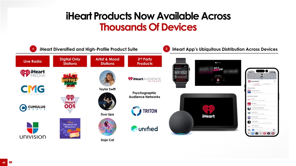 iHeart产品现已可在数千台设备上使用A B iHeart多元化且备受瞩目的产品套件iHeart App的跨设备无处不在的分发rd digital only Artist & Mood 3 party live radio stations stations products 泰勒斯威夫特心理受众网Dua Lipa Doja Cat 40