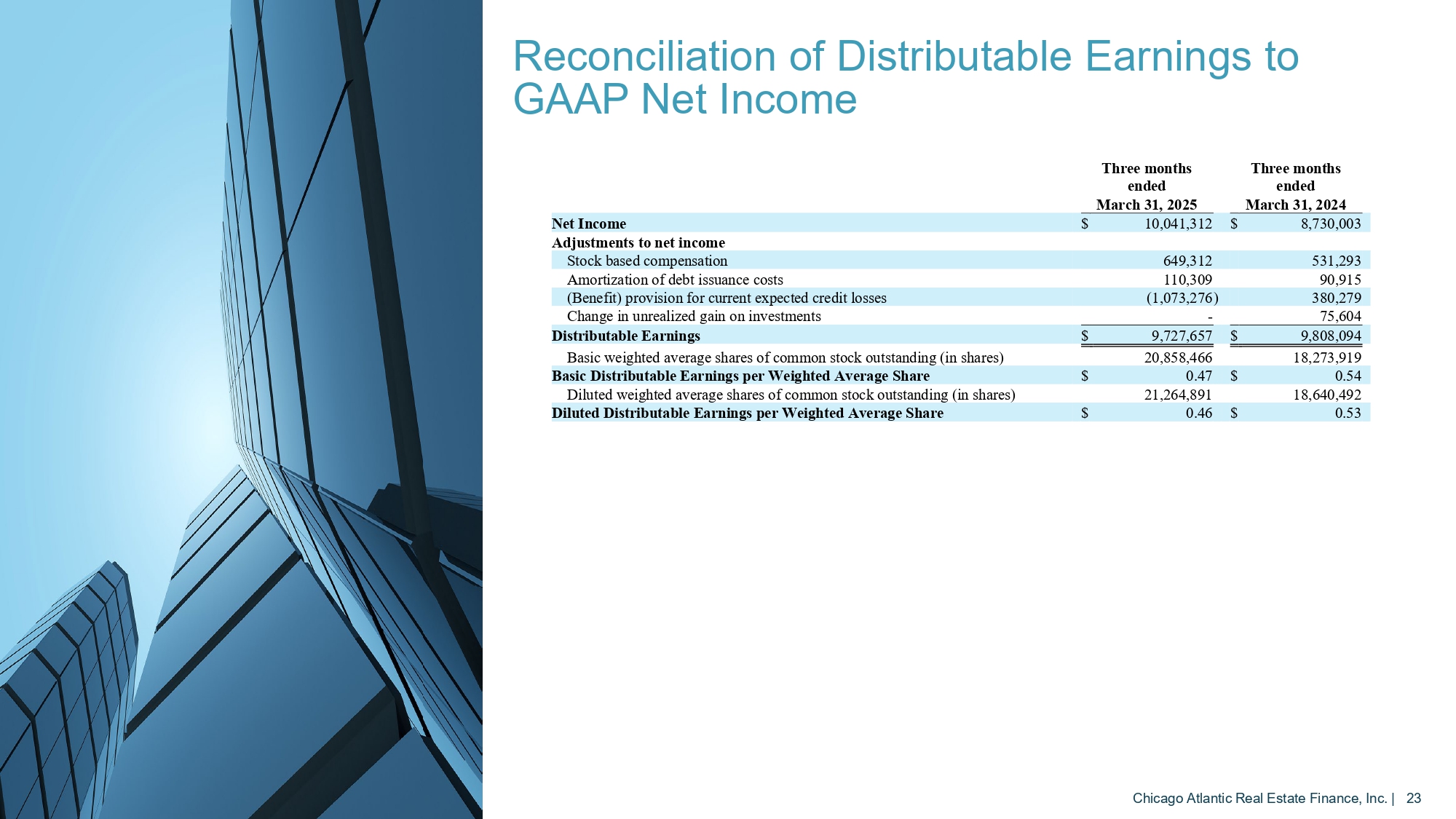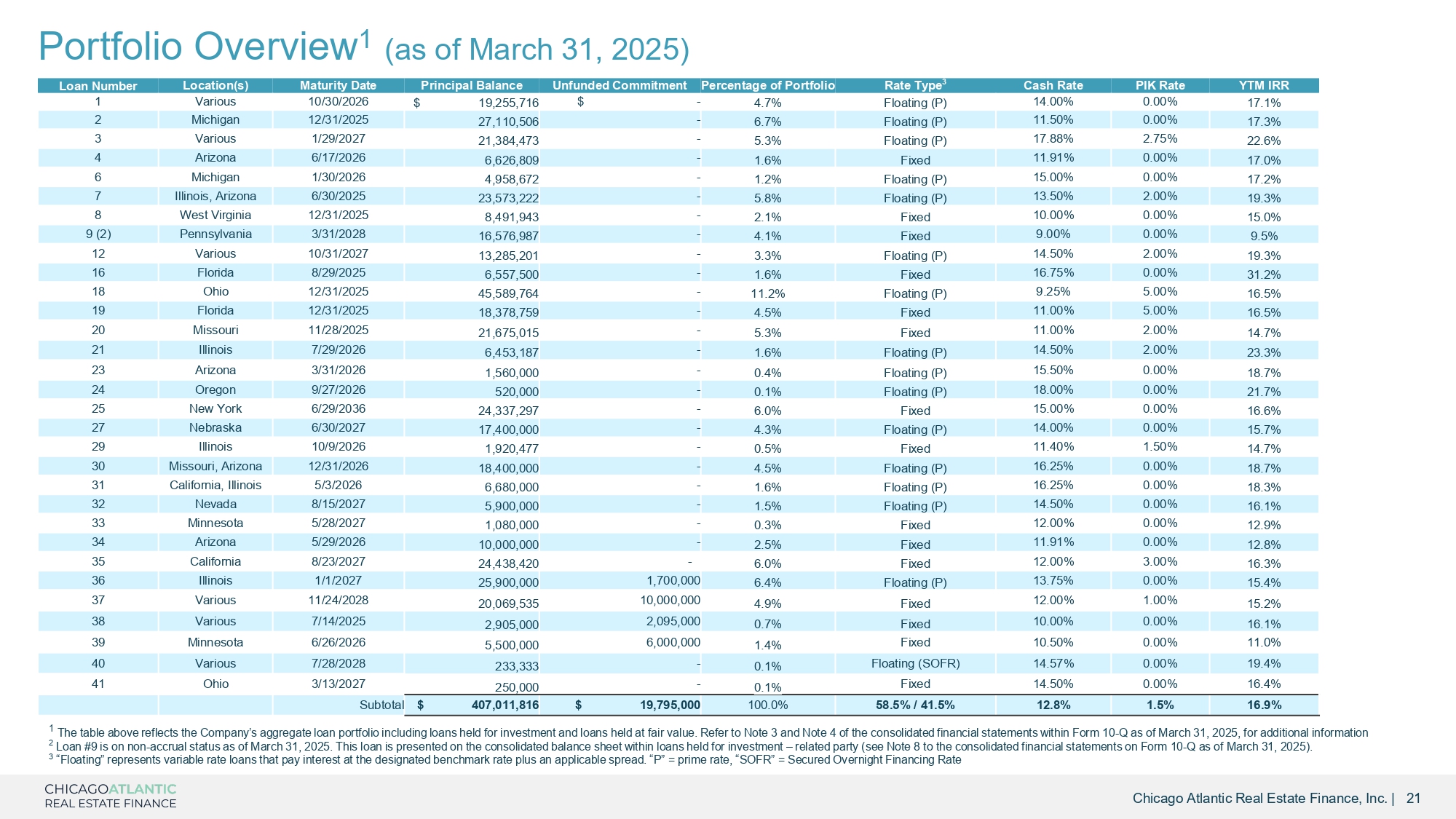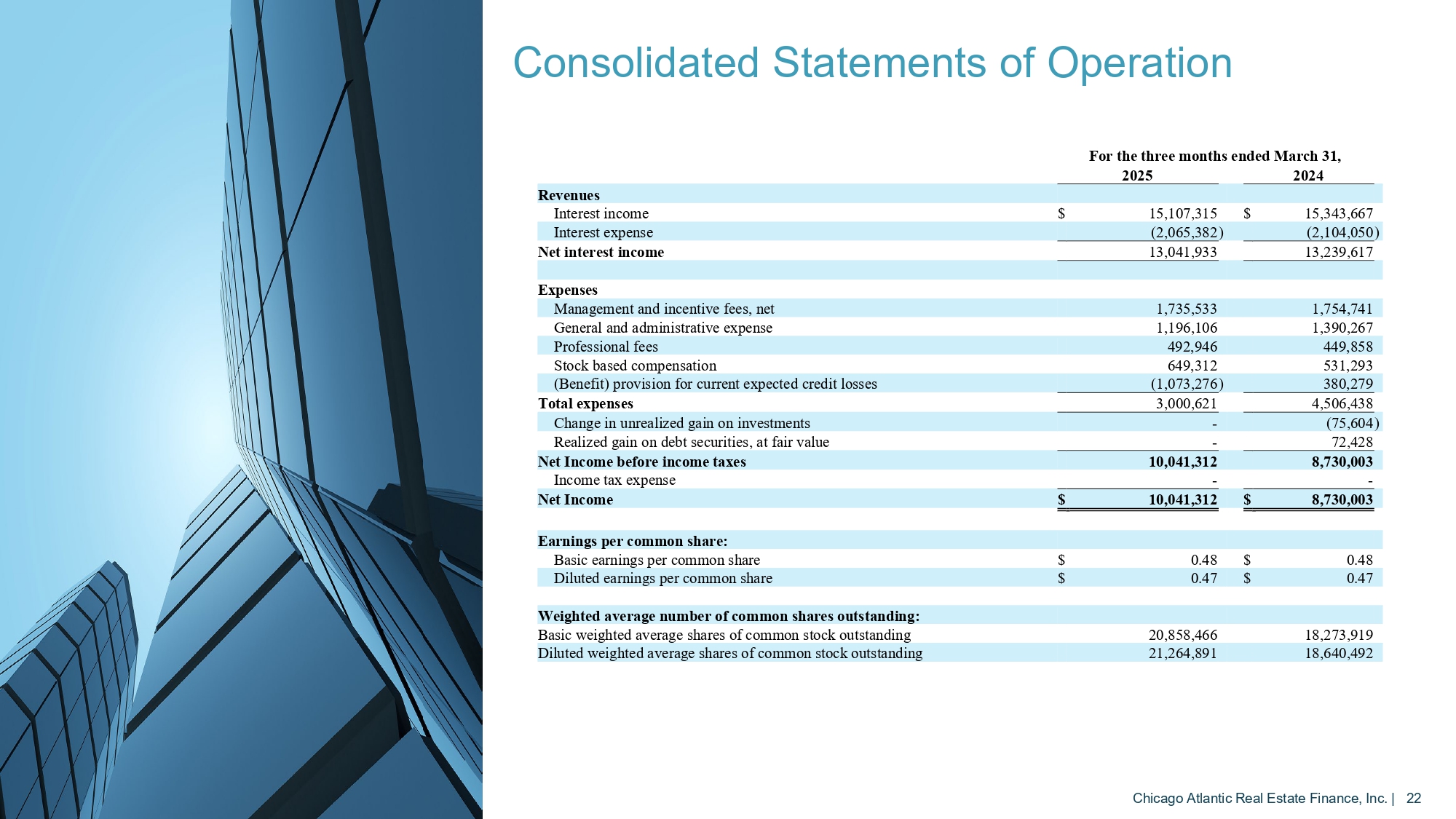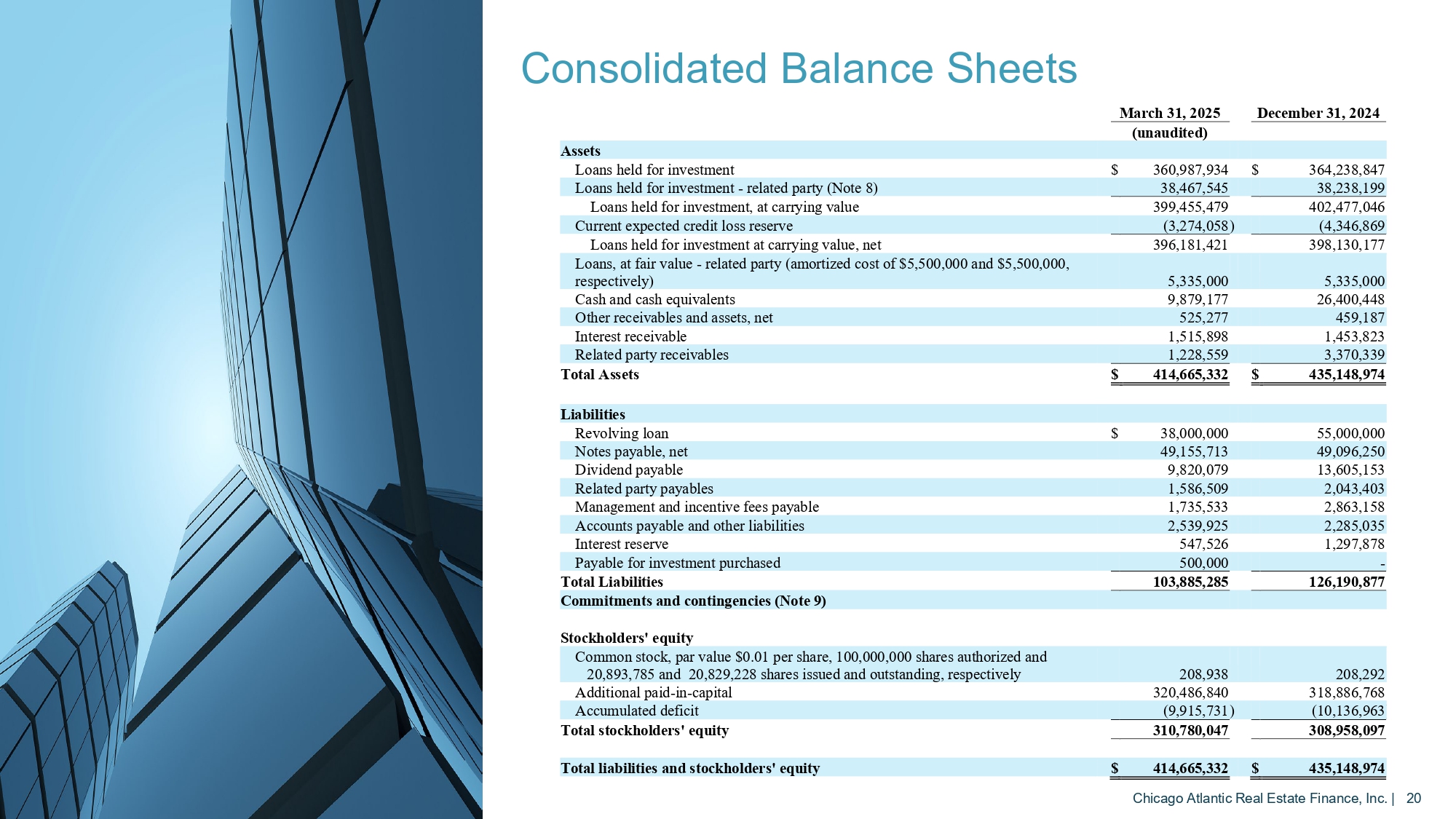 截至2025年3月31日止三个月财务概览附录Chicago Atlantic Real Estate Finance, Inc. | 19
