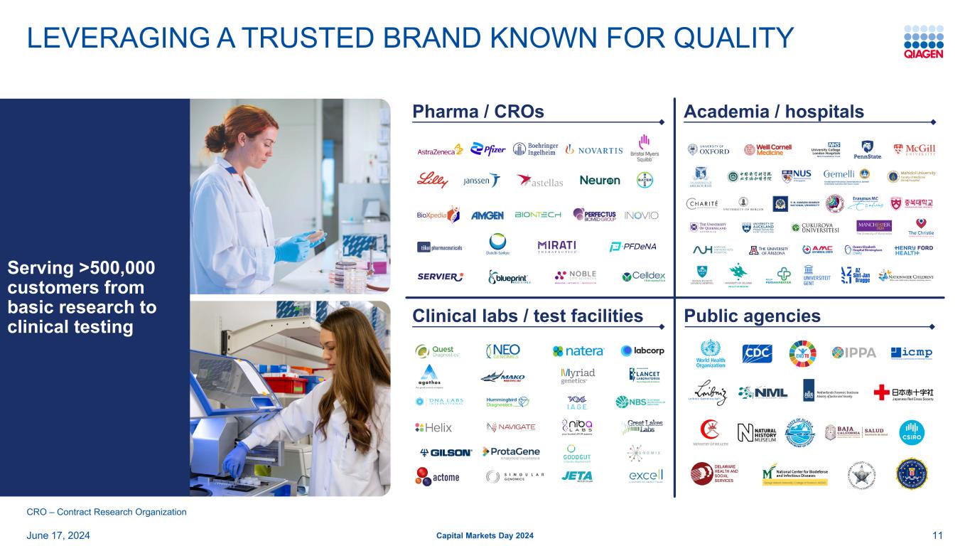 利用以质量著称的值得信赖的品牌2024年6月17日资本市场日2024年制药/CRO公共机构学术界/医院临床实验室/测试设施11 CRO –合同研究组织,为从基础研究到临床测试的> 50万客户提供服务