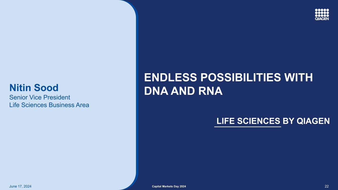 22Capital Markets Day 2024 June 17,2024 Nitin Sood高级副总裁生命科学业务领域生命科学by QIAGEN Endless possibilities with DNA and RNA