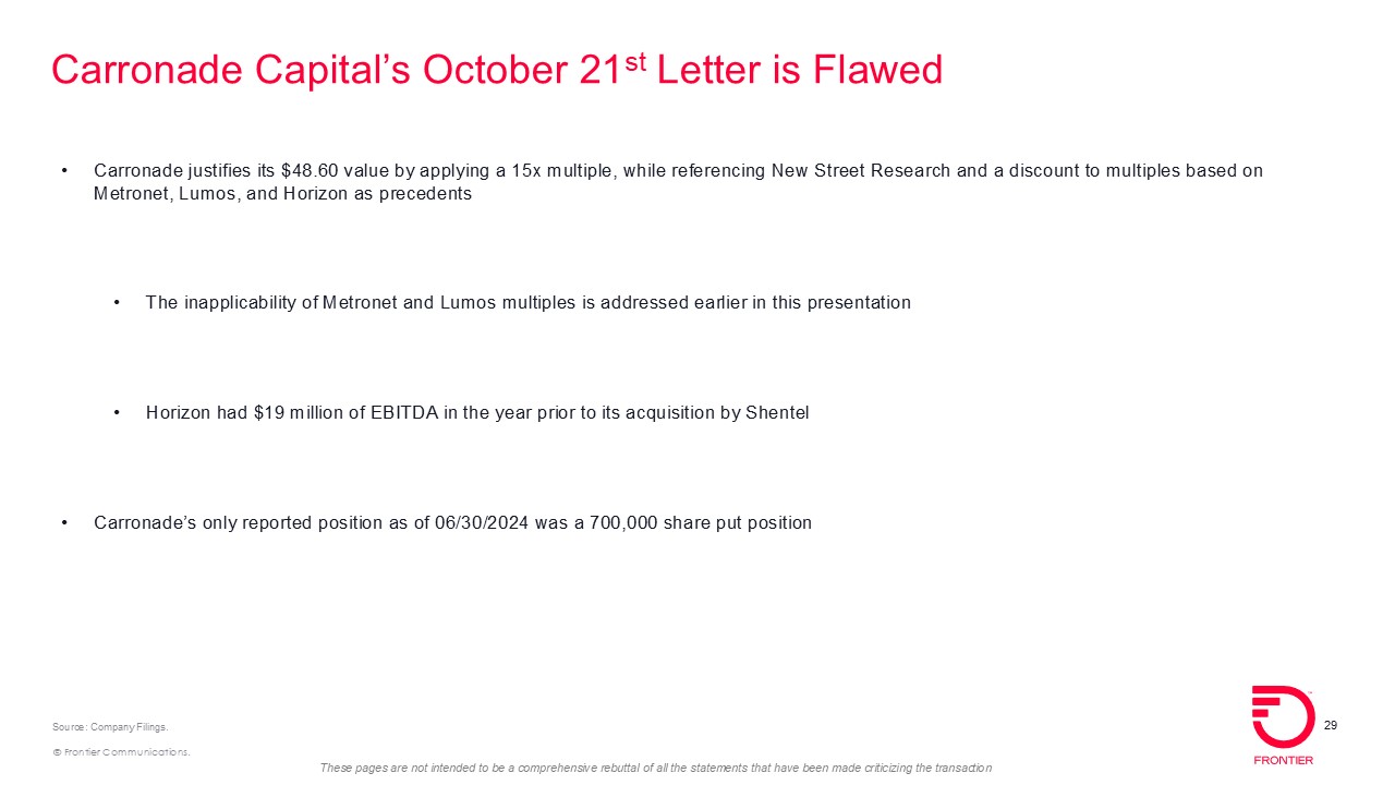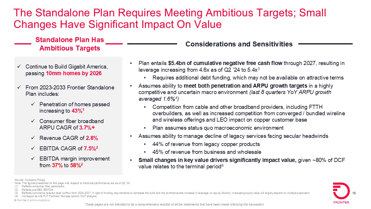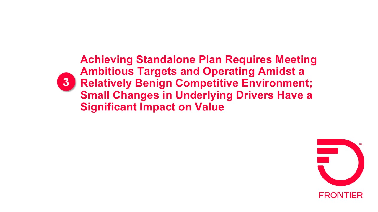 到2027年的负现金流和高杠杆;维持Frontier的光纤网络建设计划所需的额外债务资金,可能无法以有吸引力的条件获得
