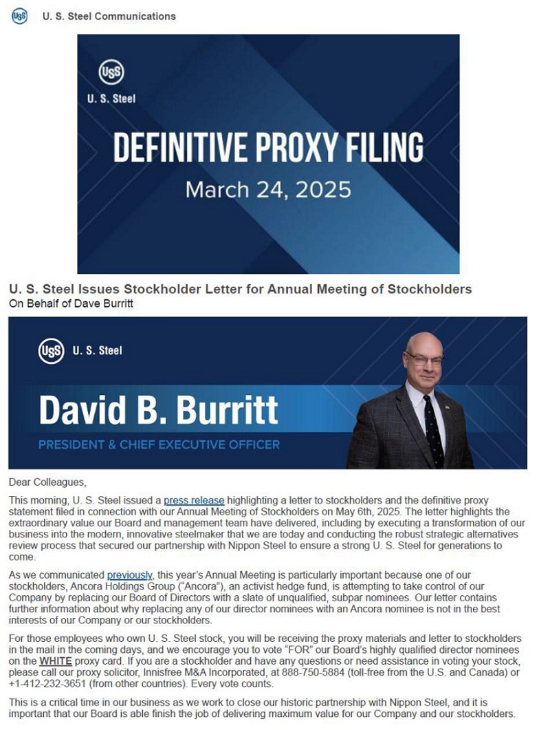 以下帖子于2025年3月24日在美国钢铁公司内部“X App”上发布。