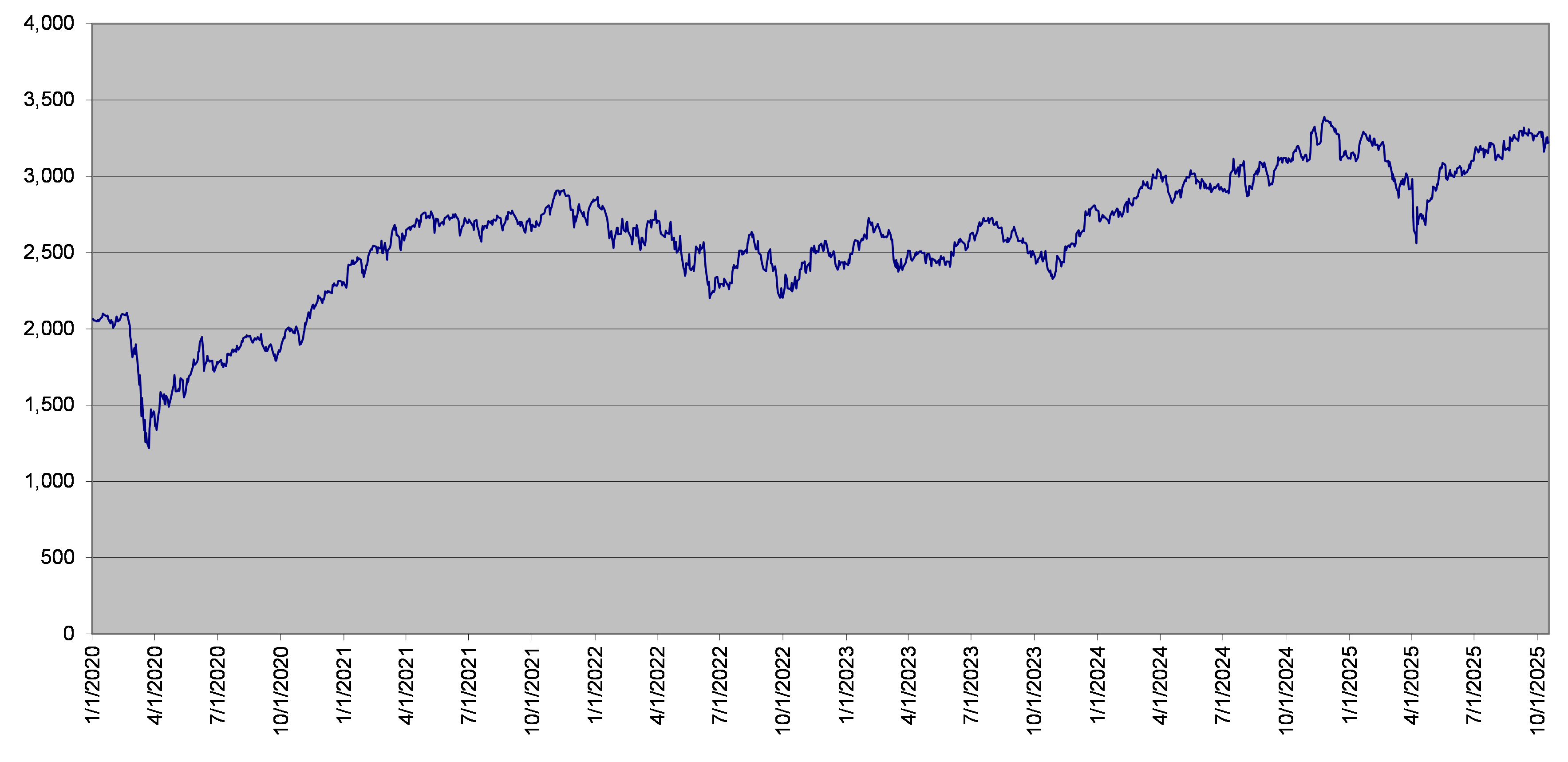 | SPX指数每日收盘水平 2020年1月1日至2025年10月17日 |
