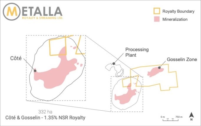 Metalla对Gosselin和C ô t é的一部分拥有1.35%的净冶炼厂收益特许权使用费(统称“特许权使用费”)。