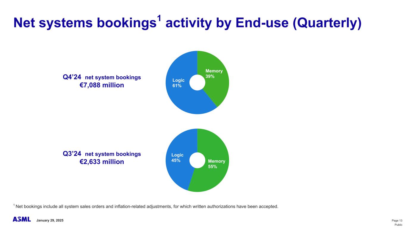 第13页2025年1月29日公共网络系统预订1活动按最终用途(季度)Q4’24净系统预订70.88亿欧元Q3’24净系统预订26.33亿欧元内存55%逻辑45% 1净预订包括所有系统销售订单和与通货膨胀相关的调整,已接受书面授权。内存39%逻辑61%