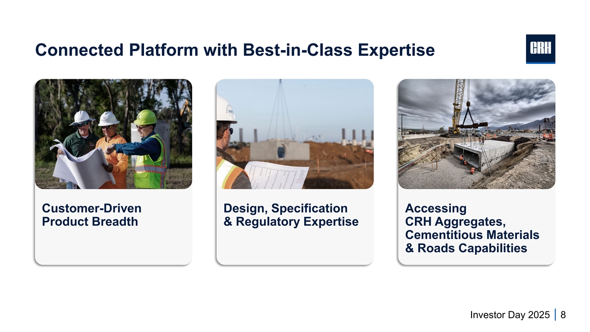 具有一流专业知识的互联平台客户驱动设计、规格准入产品广度&监管专业知识CRH骨料、水泥材料与道路能力投资者日20258