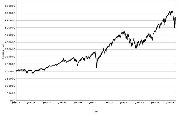 下图显示了2015年1月1日至2025年5月6日期间标的的每日历史收盘水平。我们从彭博金融服务公司获得了下图所列标的物的收盘水平,未经独立验证。