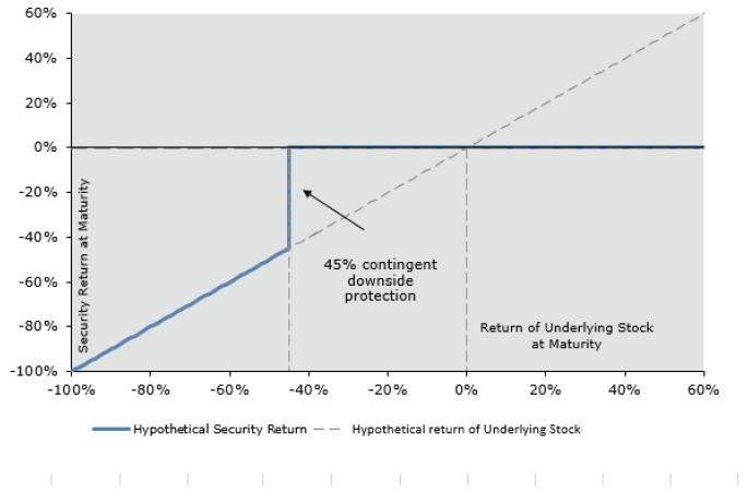 由于假设的期末价格低于假设的起始价格,但不超过45%,您将在到期时收到您的证券面值。