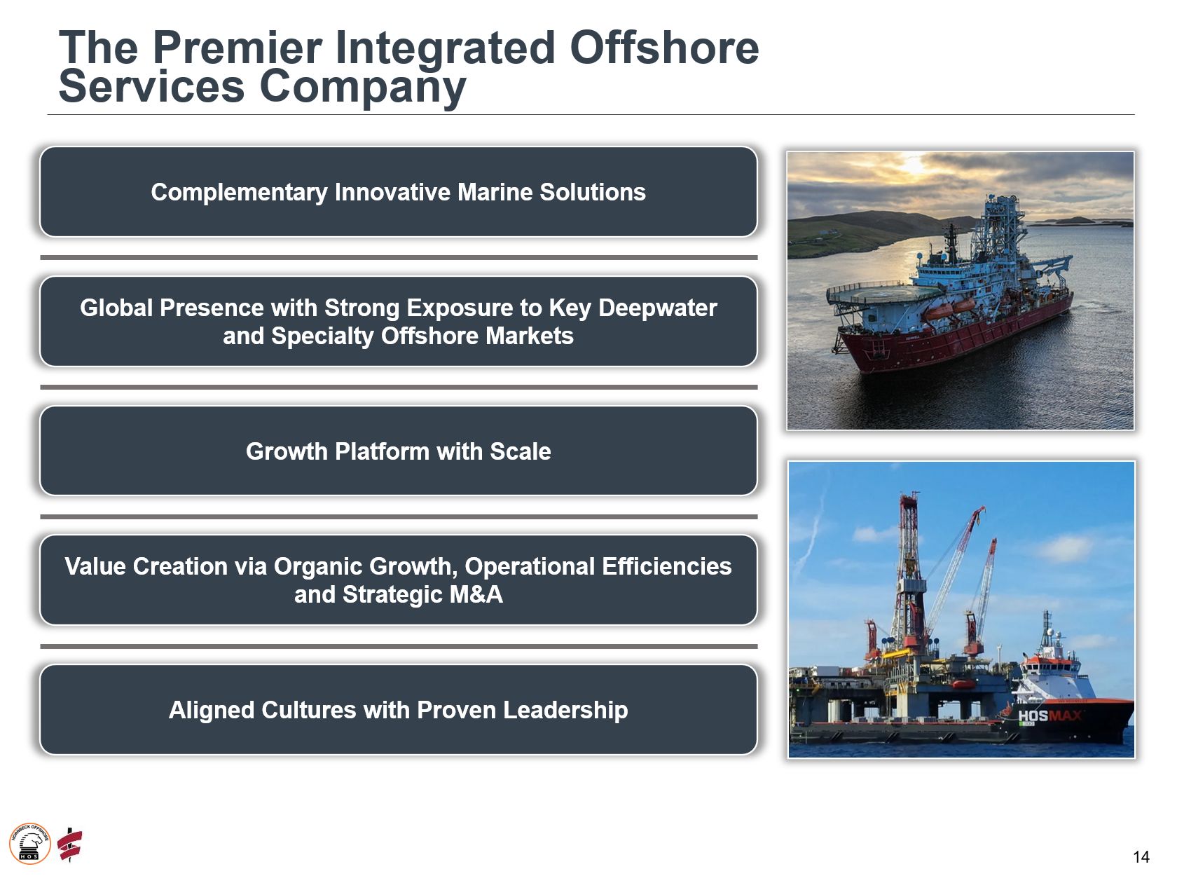 结合了两个以深水为重点、能力互补的领导者:合并后的公司创建了一个规模化、终身业务,提供跨越海上石油和天然气、国防和可再生能源行业的工程解决方案,旨在降低周期性和贯穿整个周期的收益波动,同时在需求最强劲的地方实现灵活的全球资产部署。