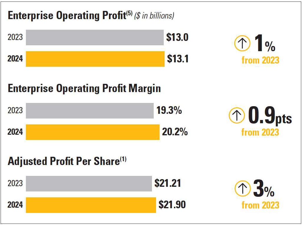 我写信也是为了向卡特彼勒的员工和管理层表示衷心的感谢,他们不断推动着我们公司的盈利增长。你们是公司成功的中心,你们对服务我们的客户、执行我们的战略和坚持我们的价值观的奉献精神意义重大,令人印象深刻。
