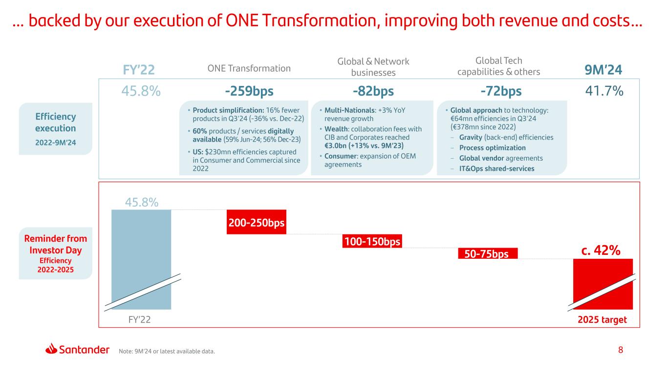 7有望实现我们上个季度上调的2024年全年目标……(1)按不变欧元计算的同比变化,但按当前欧元计算的阿根廷除外。Revenue1 Efficiency CoR FL CET1 ROTE 9M’242024目标+ 8% 41.7% c.42 % 1.2% c.1.2 % 12.5% > 12.0% 16.2% > 16% FL Basel III实施后高个位数增长