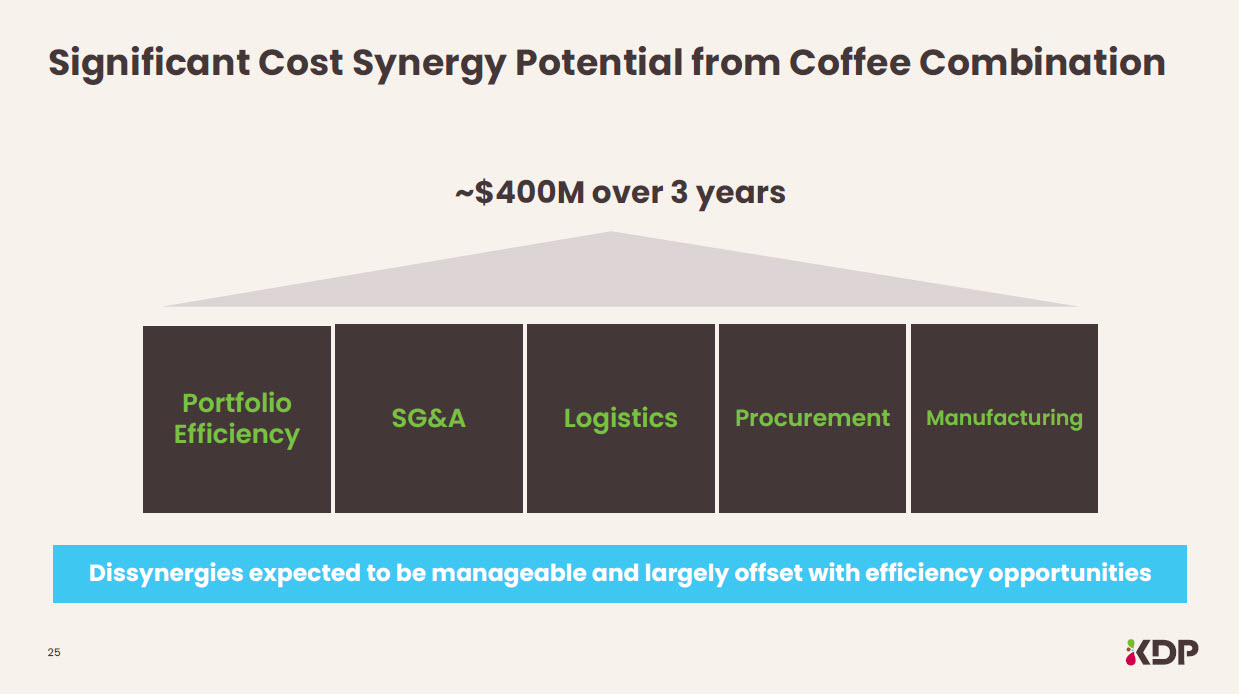来自咖啡组合的显着成本协同潜力~4亿美元3年内不协同效应预计