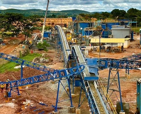图1:Buckreef Gold的2,000吨/日加工厂,展示了向球磨机输送进料的CIL罐体和输送机