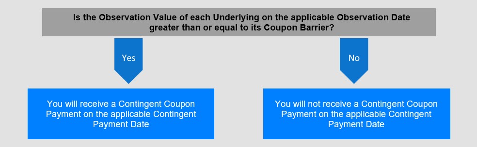如果,在任何月度观察日,观察值为每个基础大于或等于其息票障碍,我们将在适用的或有支付日(包括到期日)支付每1,000.00美元票据本金10.00美元的或有息票支付(相当于每月1.00%或每年12.00%的利率)。