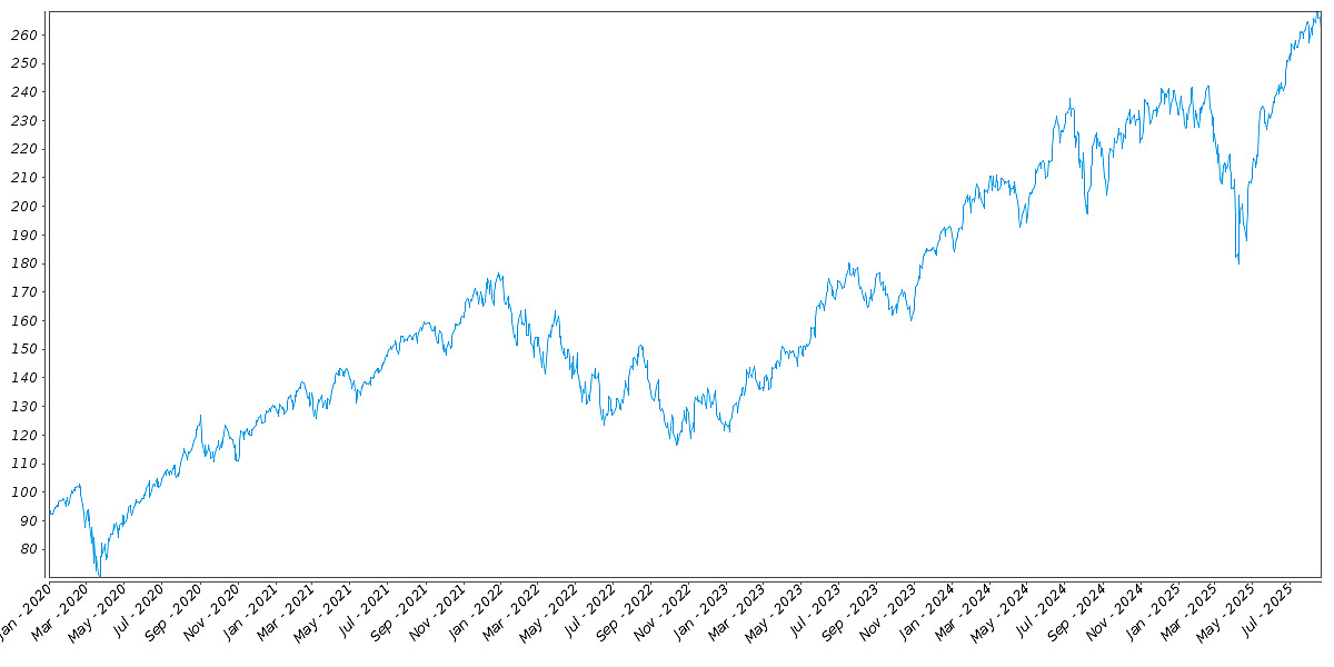指数份额金额分配给每个成分股,以得出上述计算的权重。由于指数份额是根据再平衡前一个工作日的价格分配的,因此由于市场走势,每只成分股在再平衡时的实际权重与这些权重有些不同。