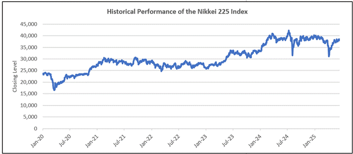 我们从彭博获得日经225指数的收盘水平,未经独立验证。日经225指数的历史收盘水平不应被视为未来表现的指标,也不能对日经225指数在最终估值日的收盘水平做出任何保证。我们无法向您保证日经225指数的表现将为您的投资带来正回报。