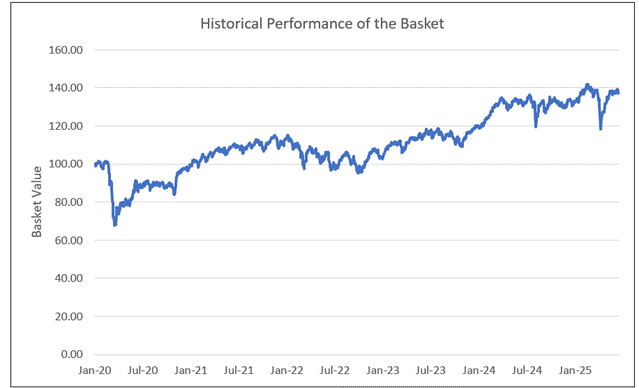 历史篮子表现不应被视为未来表现的指标,也不能对最终篮子价值给出任何保证。我们无法向您保证篮子的表现将导致您的投资获得正回报。