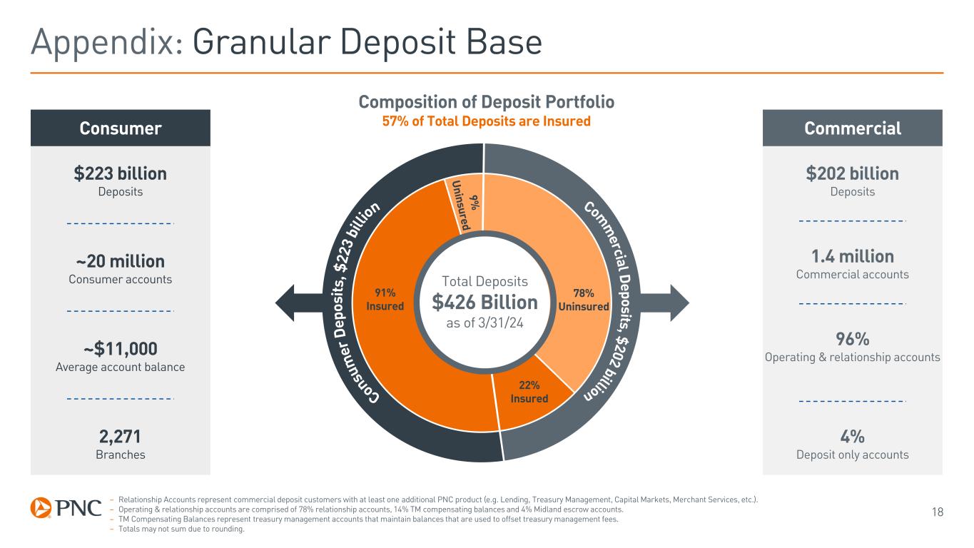 附录:关于前瞻性信息的警示性声明17 •业务和经营业绩受到我们识别和有效管理业务固有风险的能力的影响,包括酌情通过有效使用系统和控制、第三方保险、衍生品和资本管理技术,以及满足不断变化的监管资本和流动性标准。•我们的声誉以及业务和经营业绩可能会受到我们适当满足或解决可能出现的环境、社会或治理目标、目标、承诺或关切的能力的影响。•我们的业务增长部分是通过收购和新的战略举措。风险和不确定性包括所收购业务的性质和战略主动性所呈现的风险和不确定性,在某些情况下包括与我们进入新业务或新的地理或其他市场相关的风险和不确定性,以及由于我们在这些新领域缺乏经验而导致的风险和不确定性,以及与收购交易本身相关的风险和不确定性、监管问题、收购业务在完成后并入PNC或任何未能执行战略或运营计划的情况。•竞争会对客户获取、增长和保留以及信用利差和产品定价产生影响,从而影响市场份额、存款和收入。我们预测和应对技术变化的能力也会影响我们响应客户需求和满足竞争需求的能力。•业务和经营业绩还可能受到广泛的人为、自然和其他灾害(包括恶劣天气事件)、突发卫生事件、错位、地缘政治不稳定或事件、恐怖活动、系统故障或中断、安全漏洞、网络攻击、国际敌对行动或其他超出PNC控制范围的非常事件的影响,其影响方式通常是对经济和金融市场产生影响,或具体对我们或我们的交易对手、客户或第三方供应商和服务提供商产生影响。我们在2023年的10-K表格中提供了有关这些因素以及其他因素的更多详细信息,包括在该报告中的风险因素和风险管理部分以及合并财务报表附注的法律程序和承诺说明中,以及在我们随后提交给SEC的文件中。我们的前瞻性陈述也可能受到其他风险和不确定性的影响,包括我们可能在本新闻稿其他地方或我们的SEC文件中讨论的风险和不确定性,可在SEC网站www.sec.gov和我们的公司网站www.pnc.com/secfilings上查阅。我们仅将这些网址作为非活动文本参考纳入。这些网站上的信息不属于这份文件的一部分。