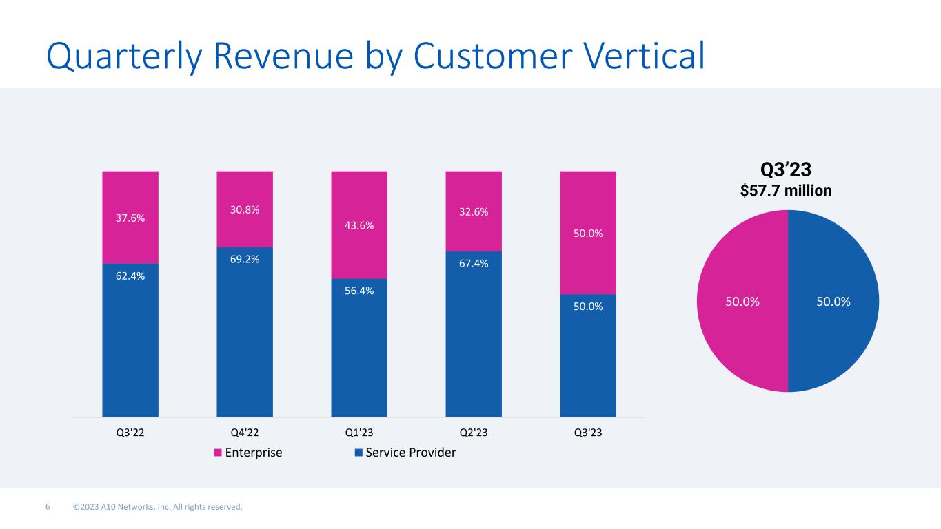 50.0% 50.0% Q3’23 $ 57.7百万季度收入按客户垂直62.4% 69.2% 56.4% 67.4% 50.0% 37.6% 30.8% 30.8% 43.6% 32.6% 50.0% Q3’22 Q4‘22 Q1’23 Q2‘23 Q3’23企业服务提供商