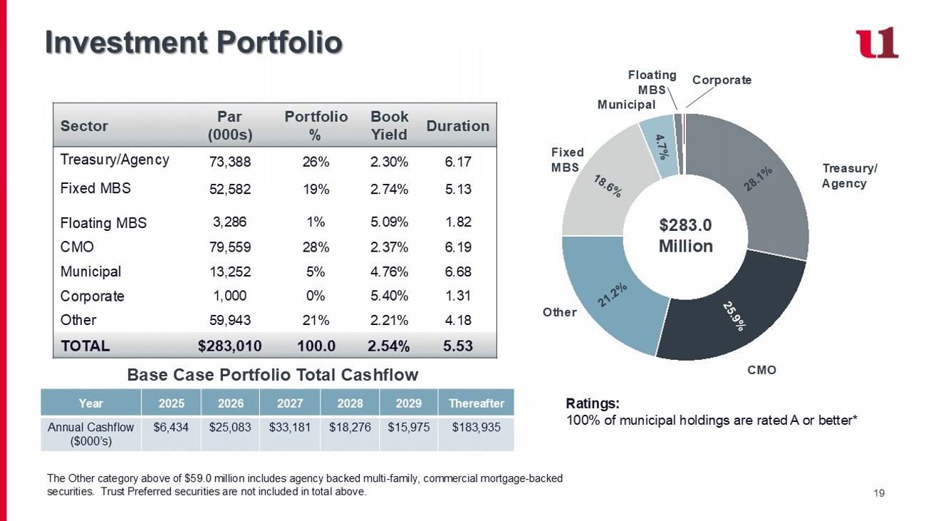 18信用质量ALL/ACL趋势(净冲销)/平均贷款非应计贷款/总贷款NPA/总资产0.21% 0.27% 0.28% 0.33% 0.26% 2021202220232024 3Q2025 0.60% 0.46% 0.48% 0.59% 0.51% 2021202220232024 3Q2025 1.38% 1.14% 1.24% 1.23% 1.28% 2021202220232024 3Q2025-0.02%---0.06%-0.07%-0.16%-0.08% 2021202220232024 3Q2025
