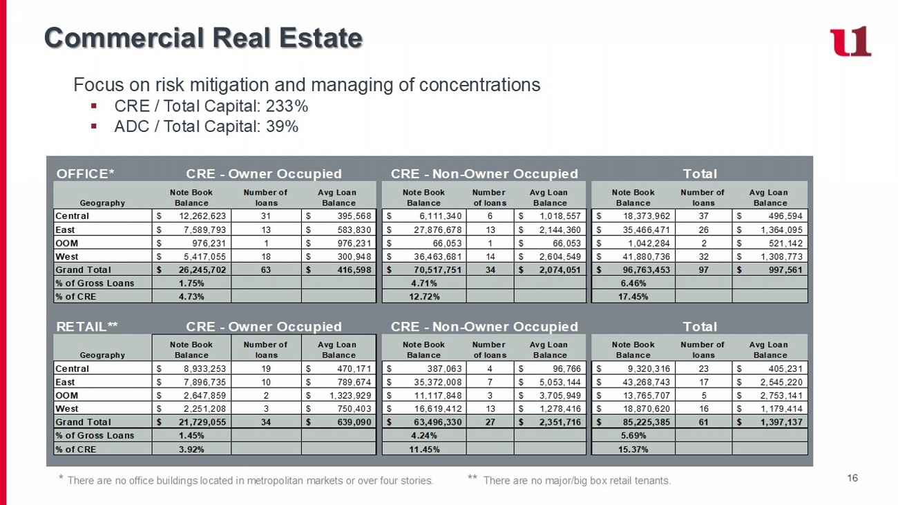 16商业地产聚焦风险缓释和集中度管理▪CRE/总资本:233%▪ADC/总资本:39%*没有位于大都市市场或四层以上的办公楼。**没有主要/大盒子零售租户。办公室*地理笔记账簿余额贷款数平均贷款余额笔记账簿余额贷款数平均贷款余额笔记账簿余额贷款数平均贷款余额中央12,262,623美元31395,568美元6,111,340美元61,018,557美元18,373,962美元37496,594美元东部7,589,793美元13583,830美元27,876,678美元132,144,360美元35,466,471美元261,364,095美元OOM 976,231美元1976,231美元66,053美元166,053美元1,042,284美元2521,142美元西部5,417,055美元18300,948美元36,463,681美元142,604,549美元41,880,736美元321,**地理笔记本余额数贷款平均贷款余额票据账簿余额贷款数平均贷款余额票据账簿余额贷款数平均贷款余额中央8,933,253美元19470,171美元387,063美元496,766美元9,320,316美元23405,231美元东部7,896,735美元10789,674美元35,372,008美元75,053,144美元43,268,743美元172,545,220美元OOM 2,647,859美元21,323,929美元11,117,848美元33,705,949美元13,765,707美元52,753,141美元西部2,251,208美元3750,403美元16,619,412美元131,278,416美元18,870,620美元161,179,414美元占用CRE-非业主占用合计