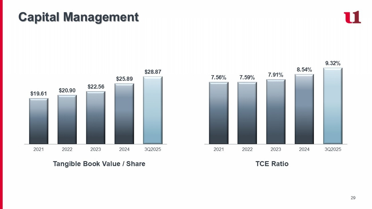 29资本管理有形账面价值/股份TCE比率$ 19.61 $ 20.90 $ 22.56 $ 25.89 $ 28.87 2021202220232024 3Q2025 7.56% 7.59% 7.91% 8.54% 9.32% 2021202220232024 3Q2025