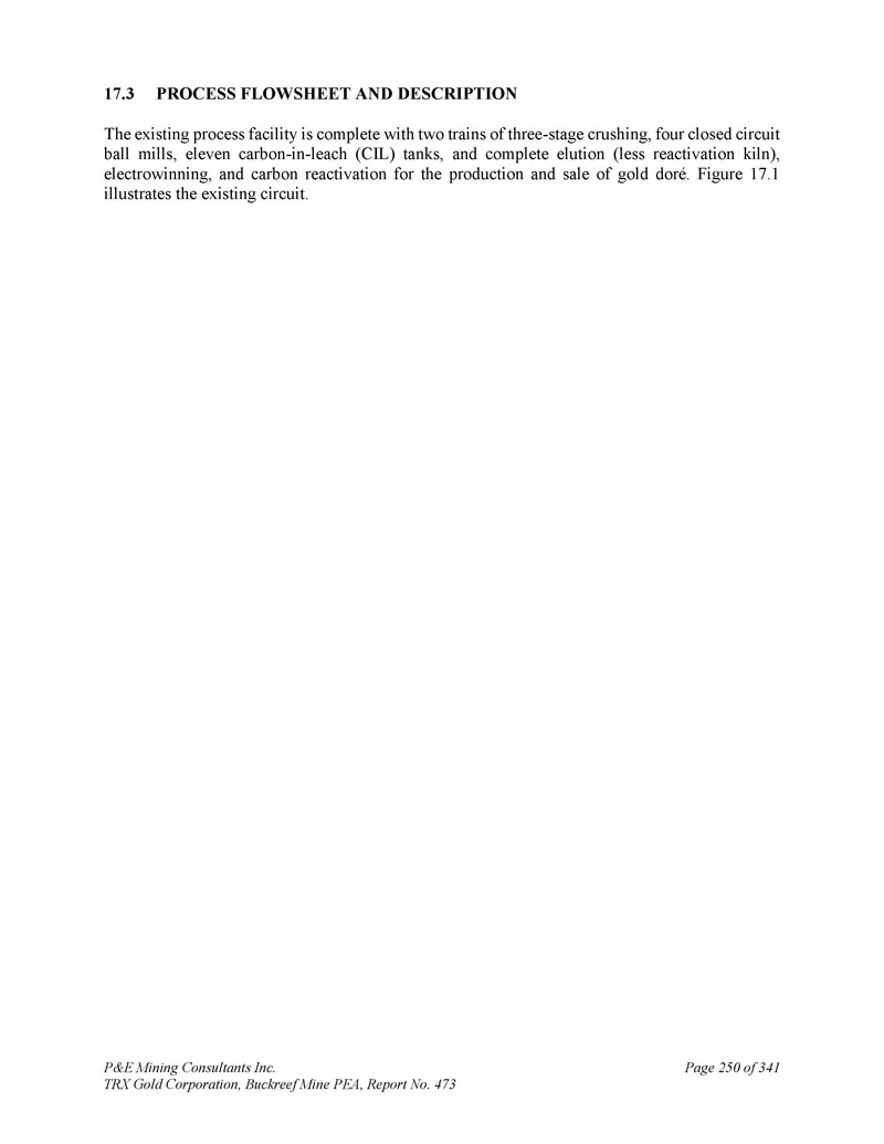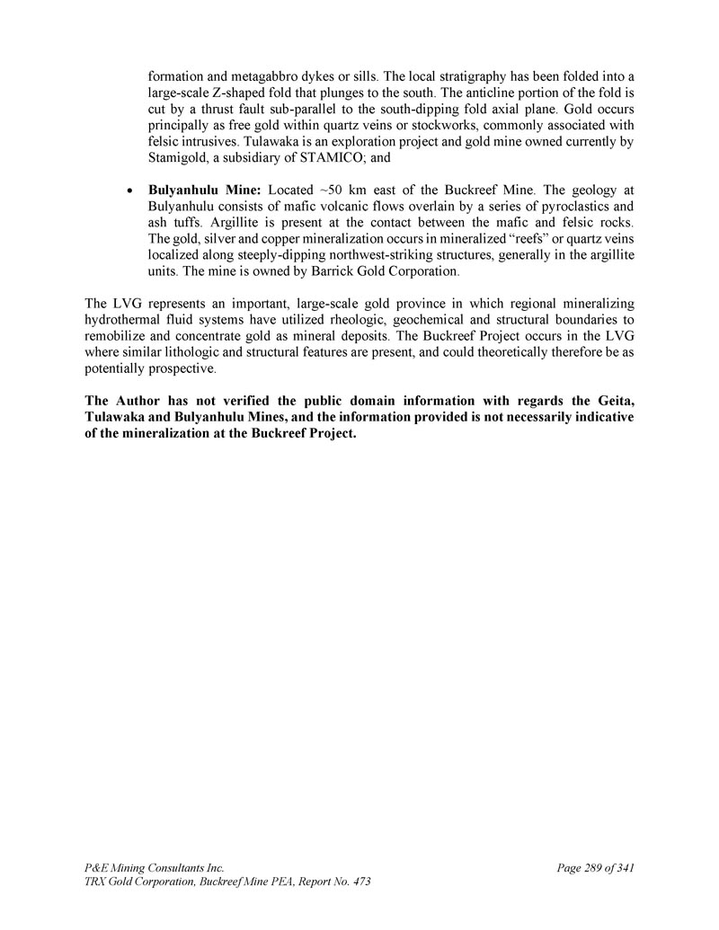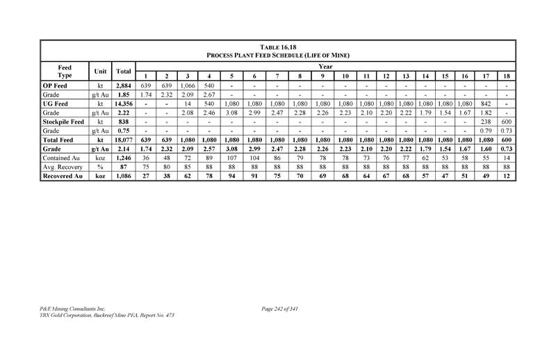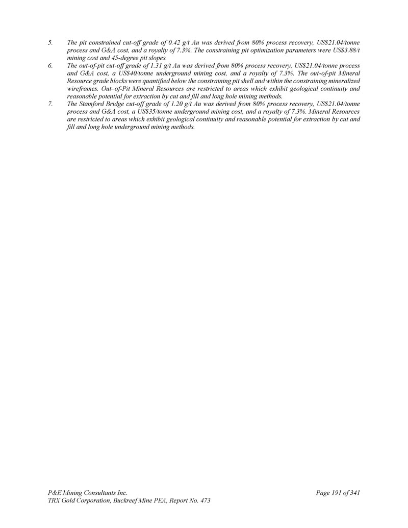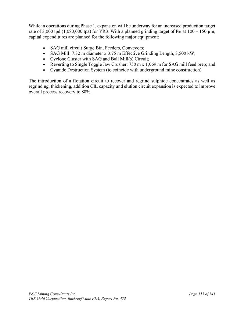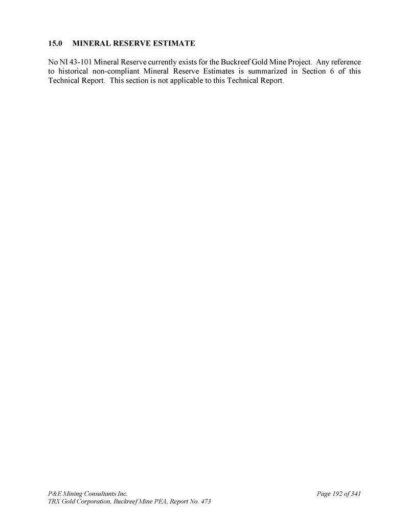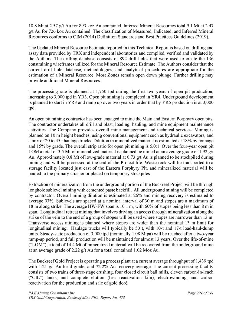 P & E Mining Consultants Inc. TRX Gold Corporation,Buckreef Mine PEA,报告第473期第314页,共341页