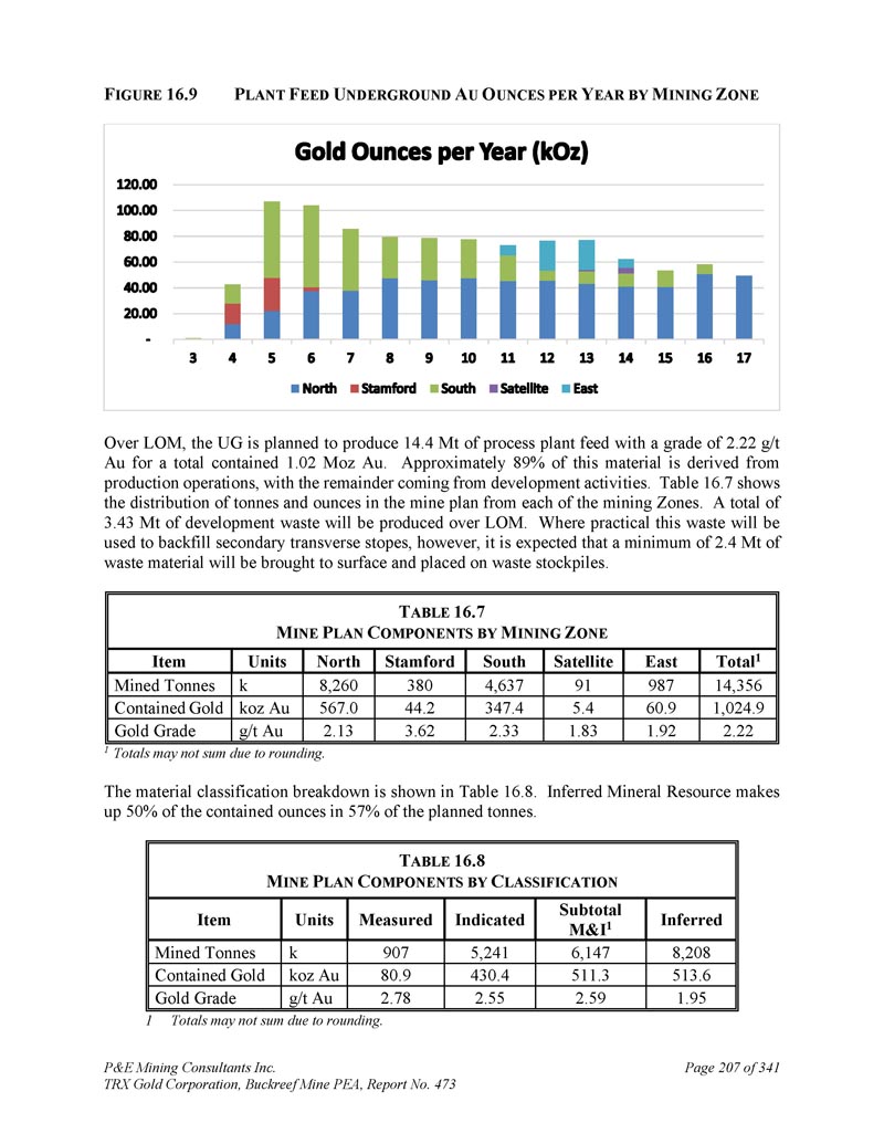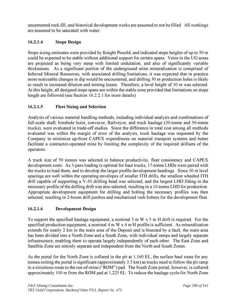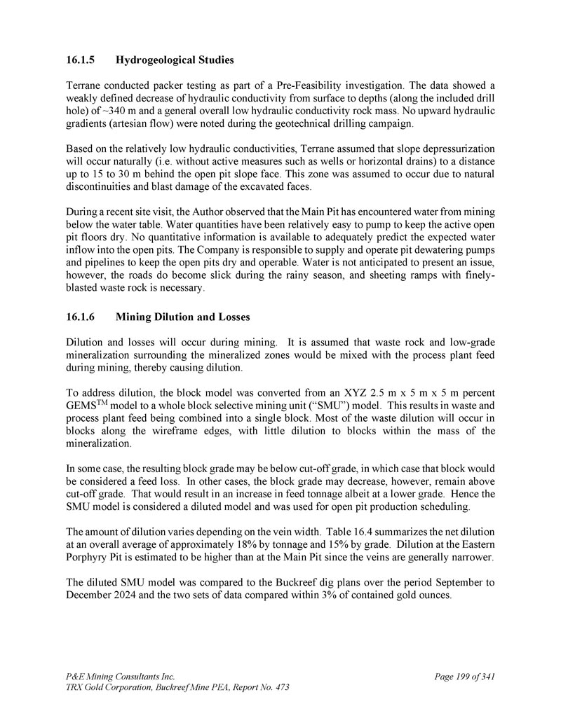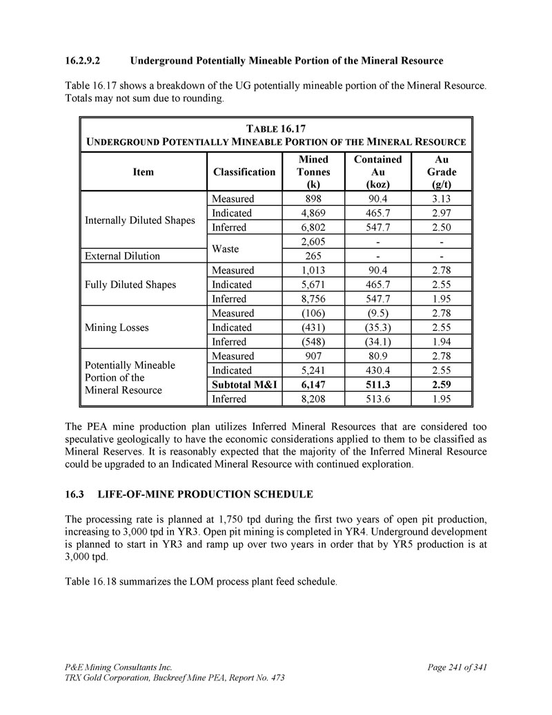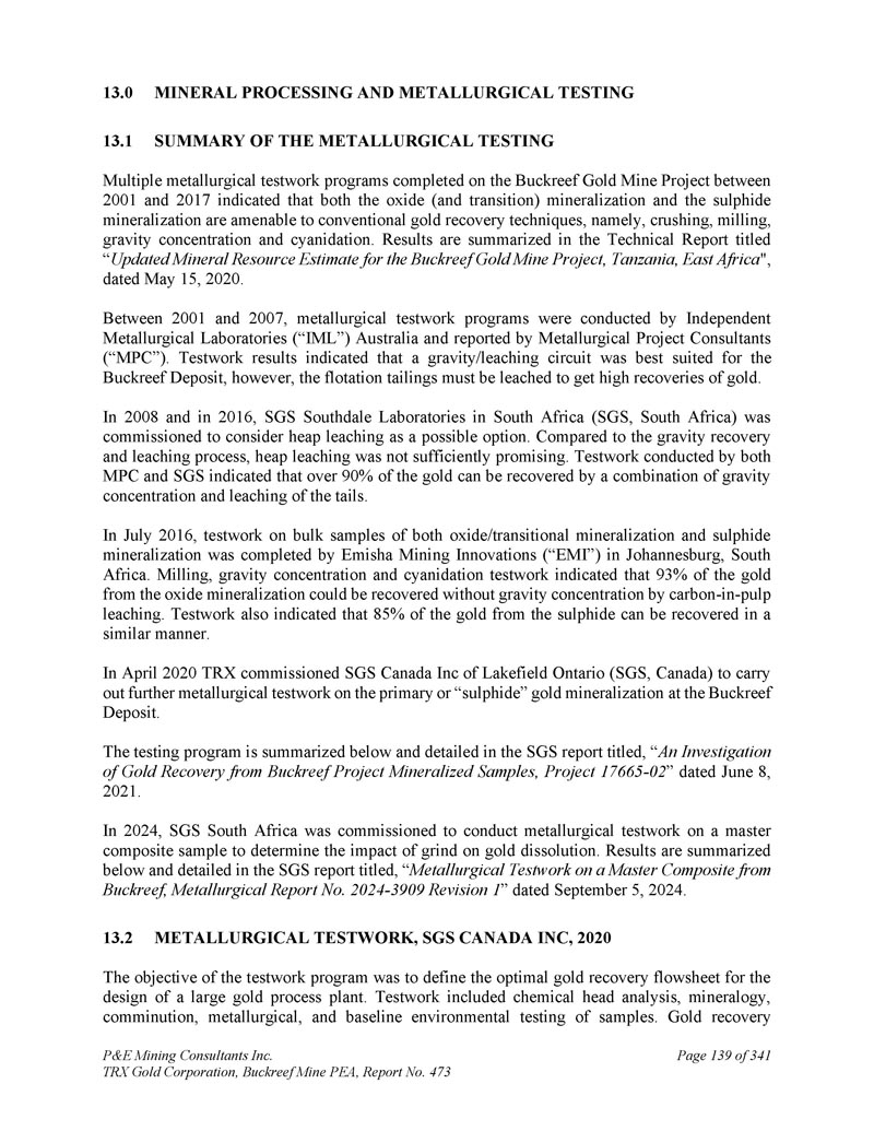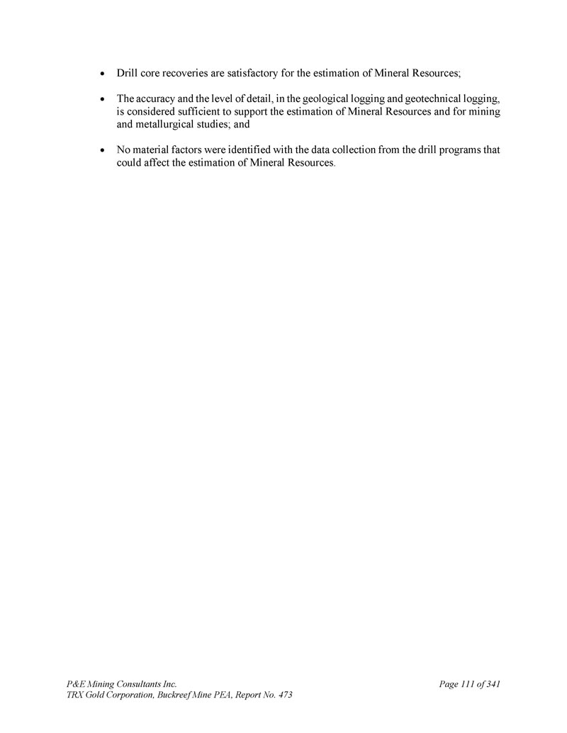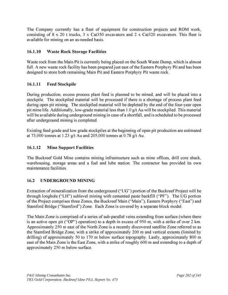 P & E Mining Consultants Inc. TRX Gold Corporation,Buckreef Mine PEA,报告第473期第314页,共341页