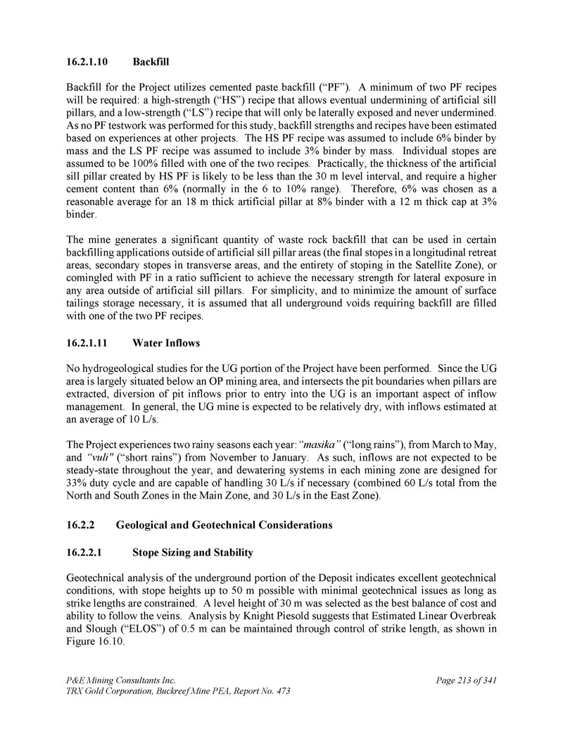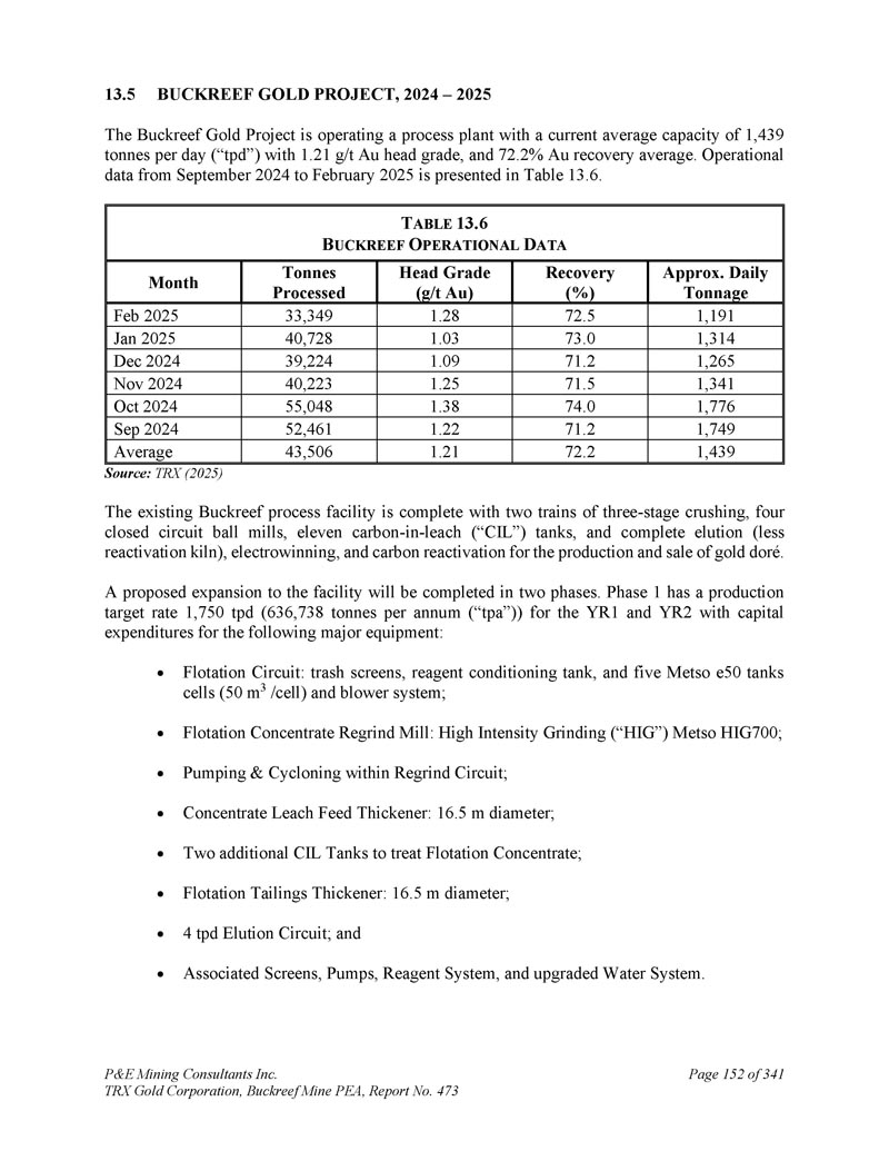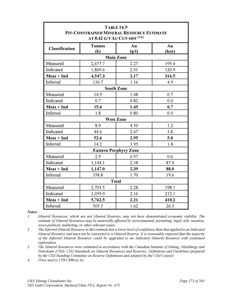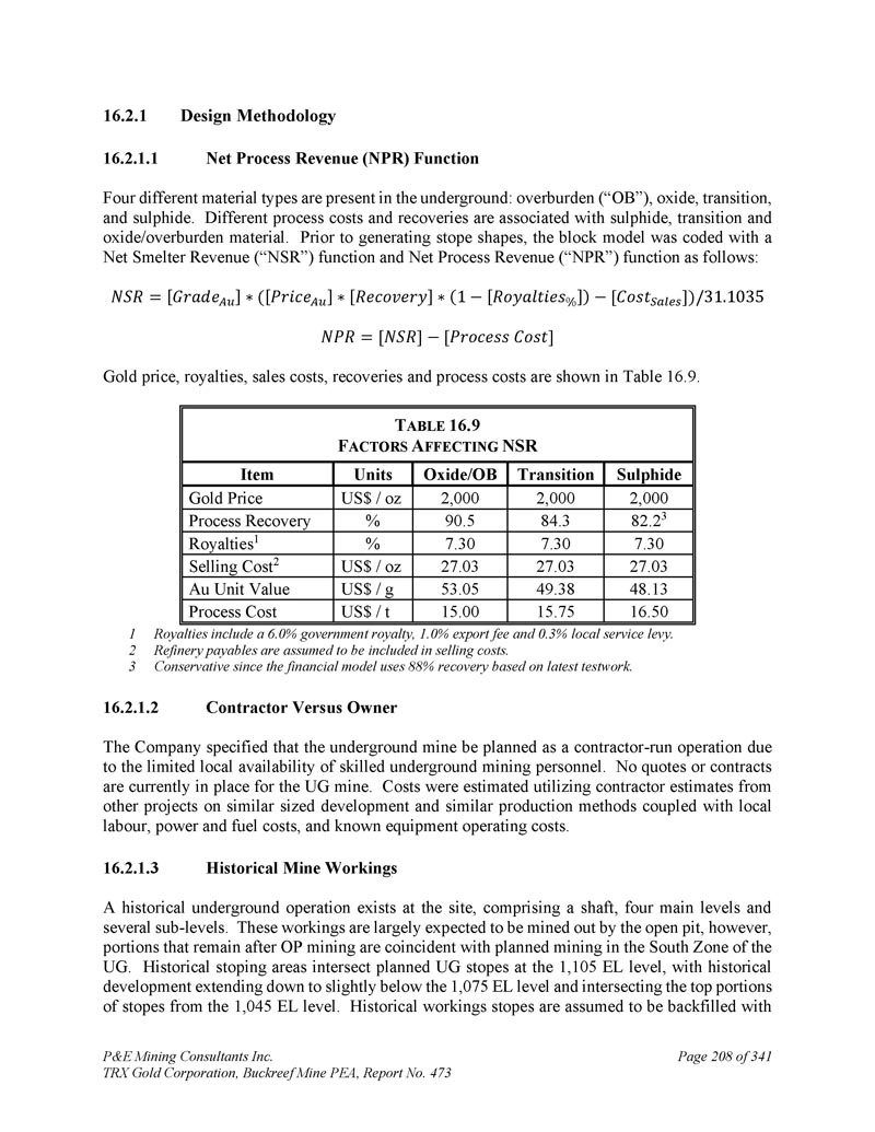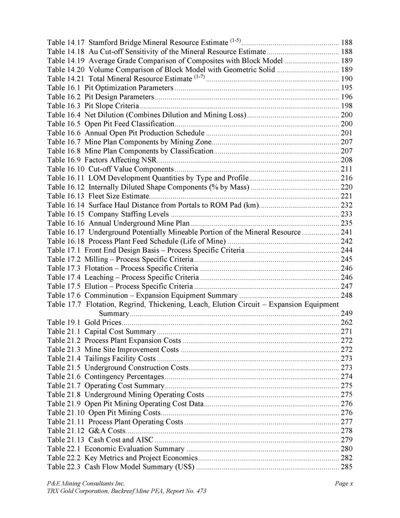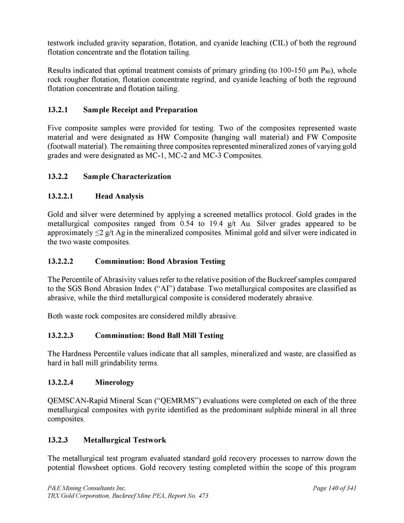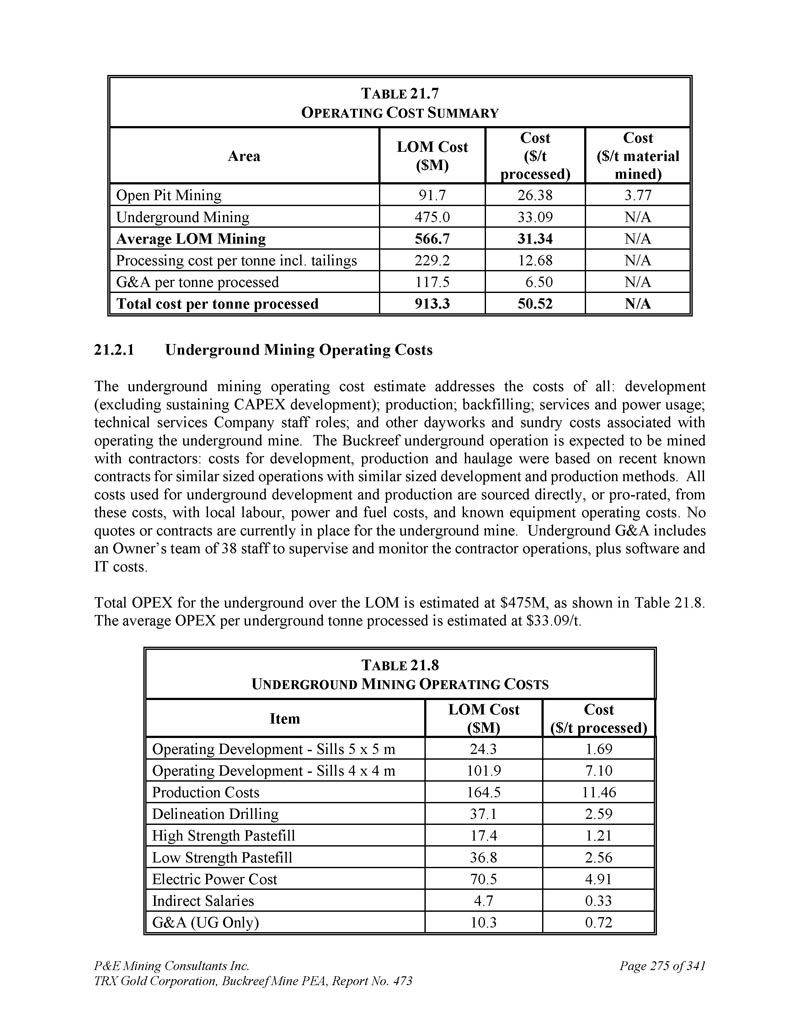 P & E Mining Consultants Inc. TRX Gold Corporation,Buckreef Mine PEA,报告第473期第314页,共341页