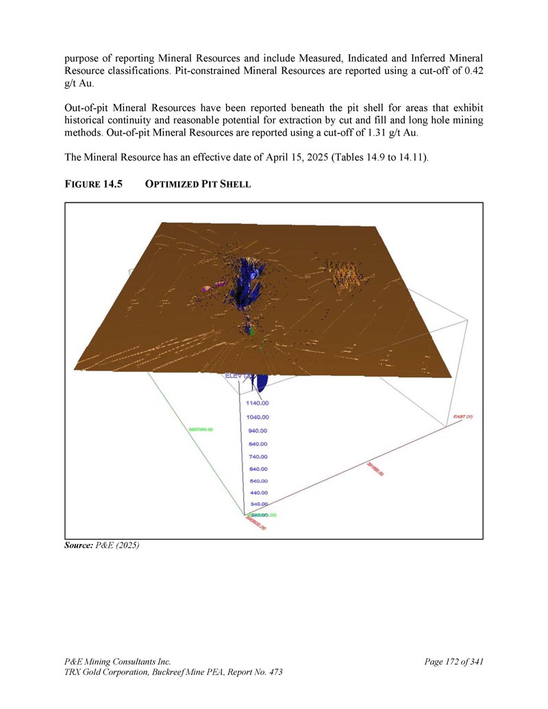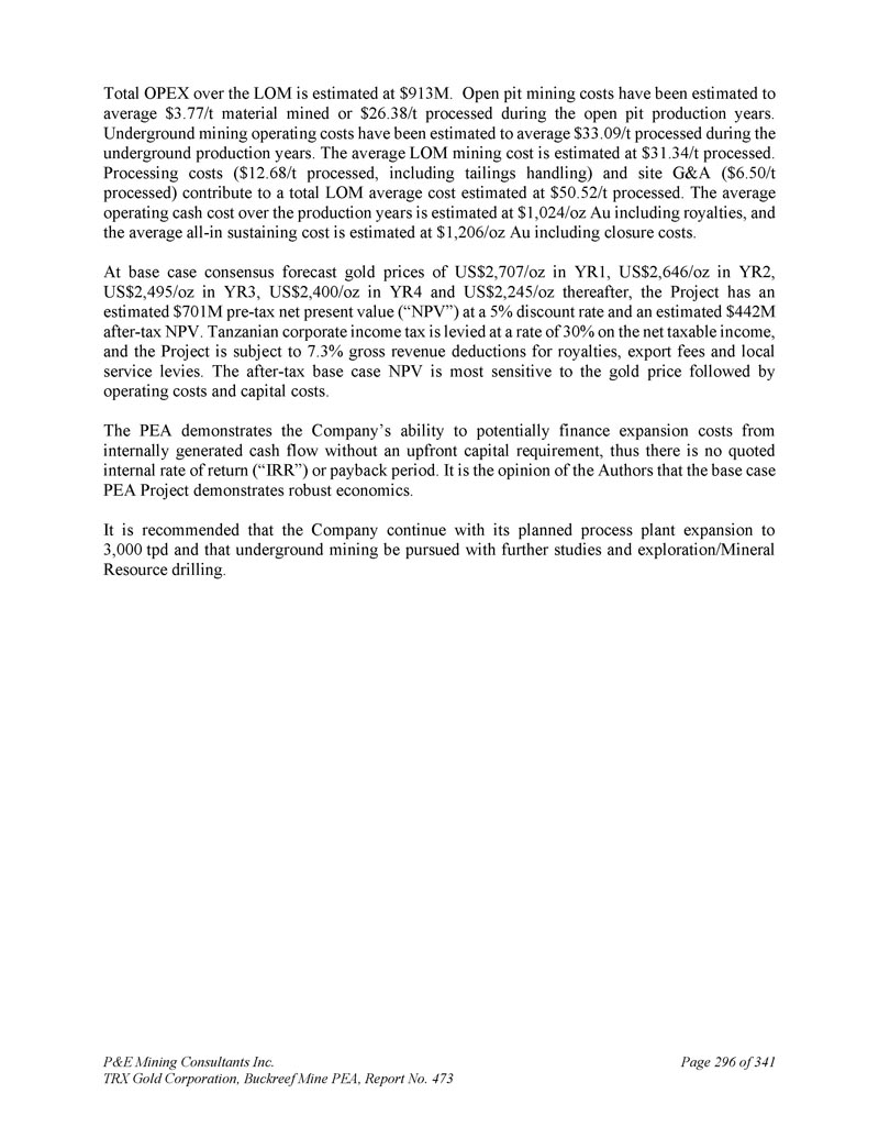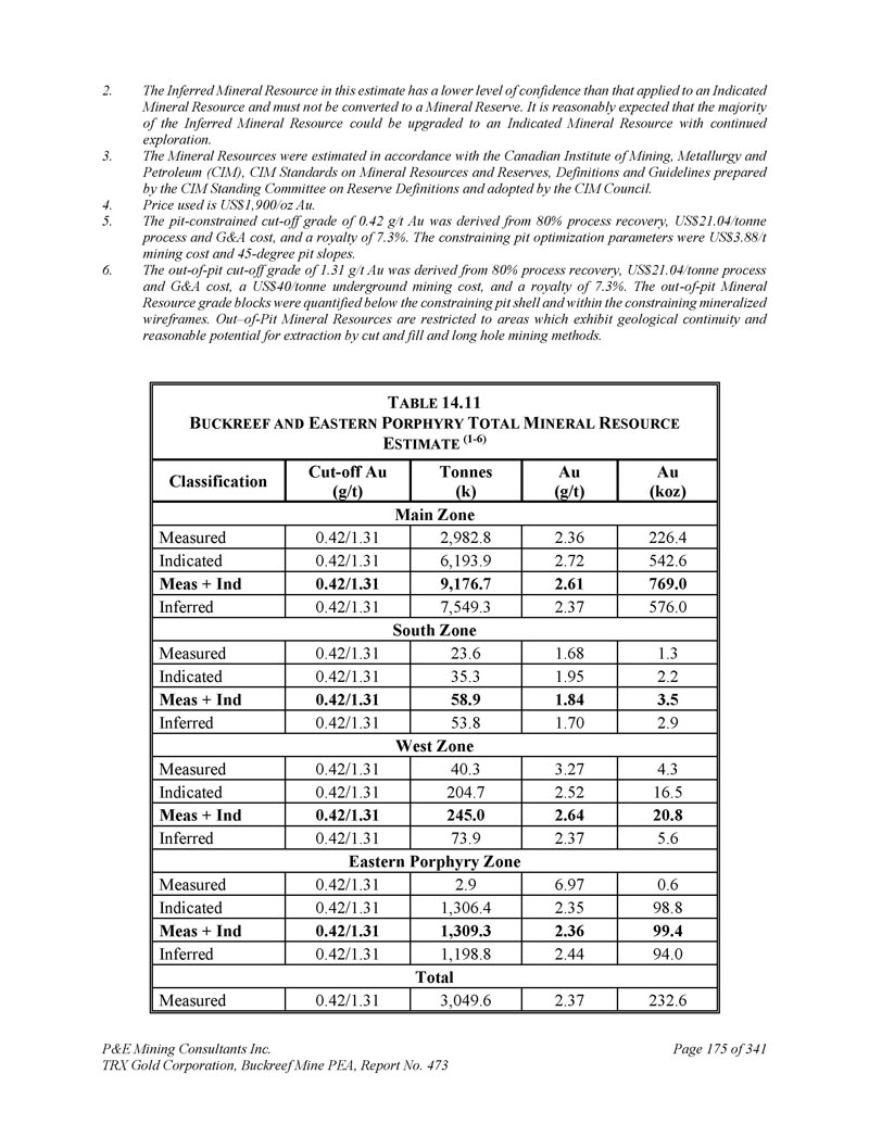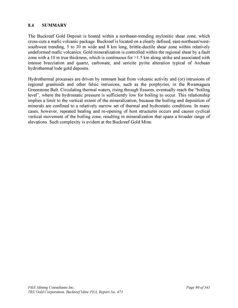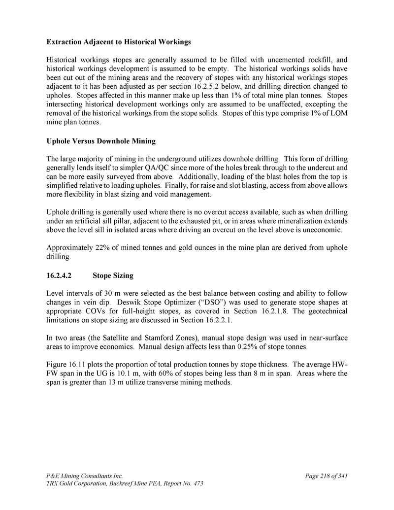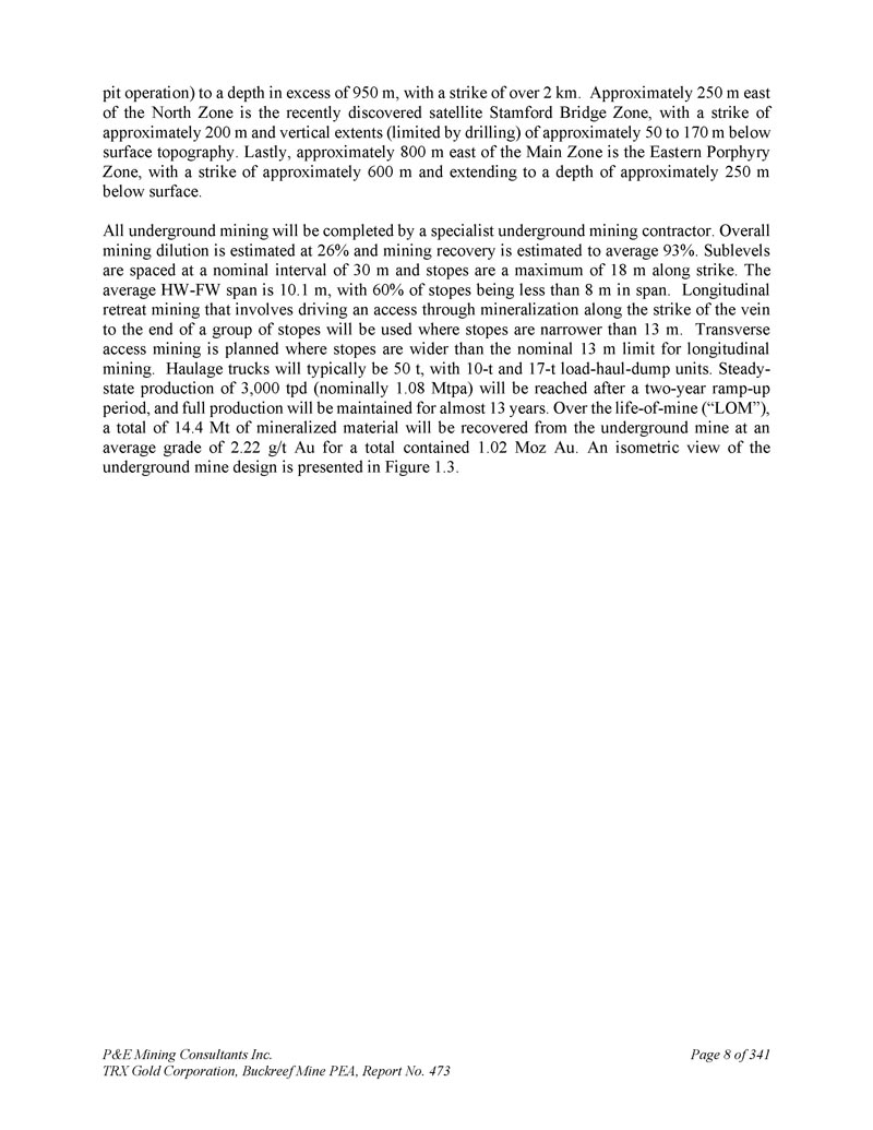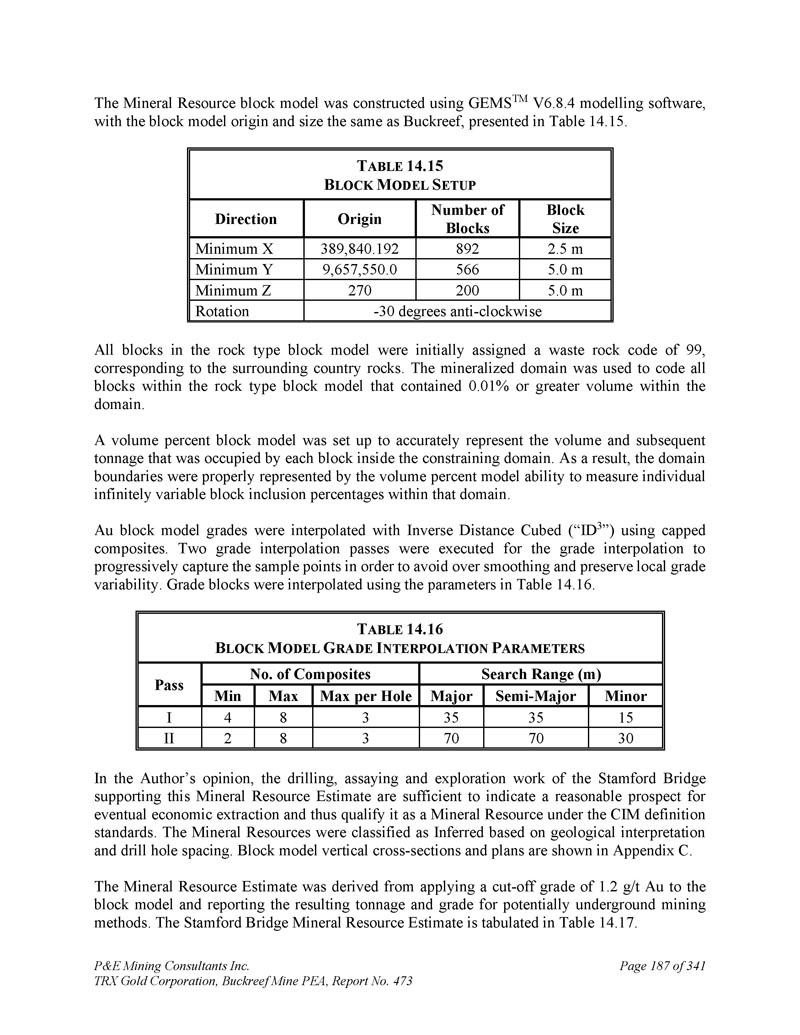 P & E Mining Consultants Inc. TRX Gold Corporation,Buckreef Mine PEA,报告第473期第314页,共341页