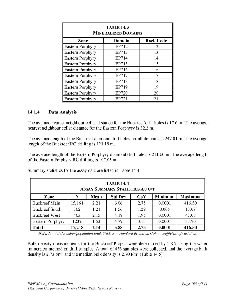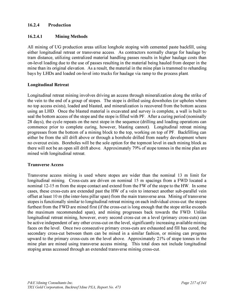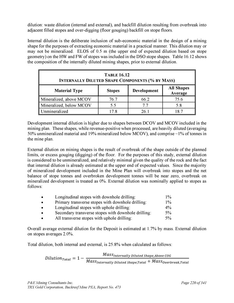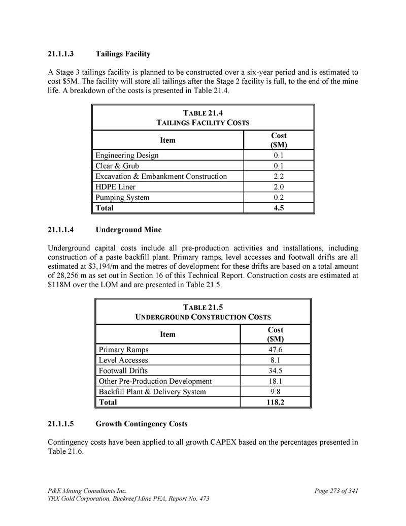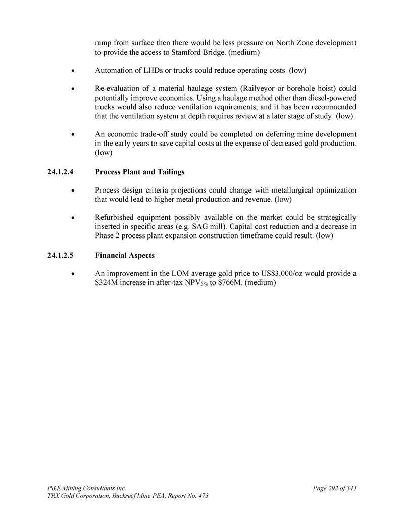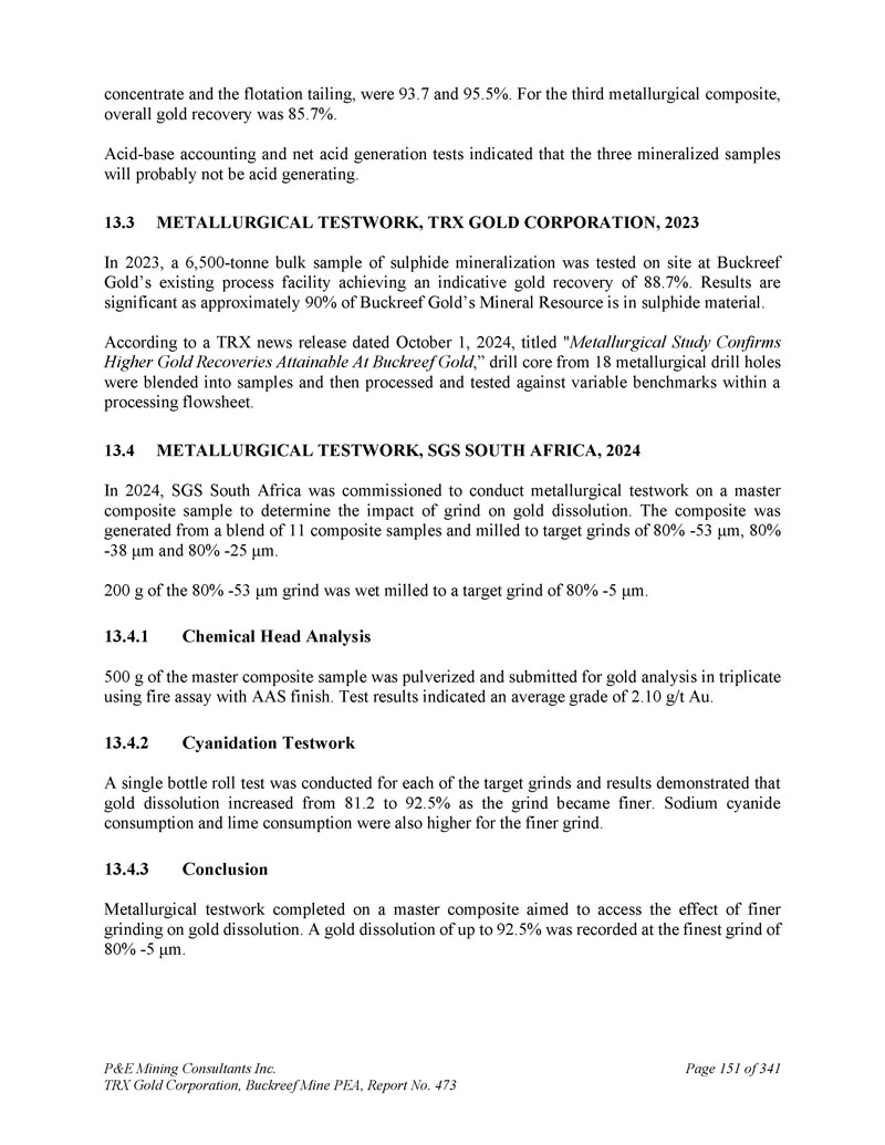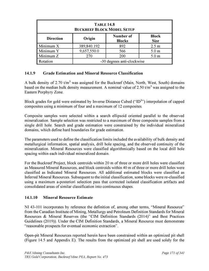 P & E Mining Consultants Inc. TRX Gold Corporation,Buckreef Mine PEA,报告第473期第314页,共341页