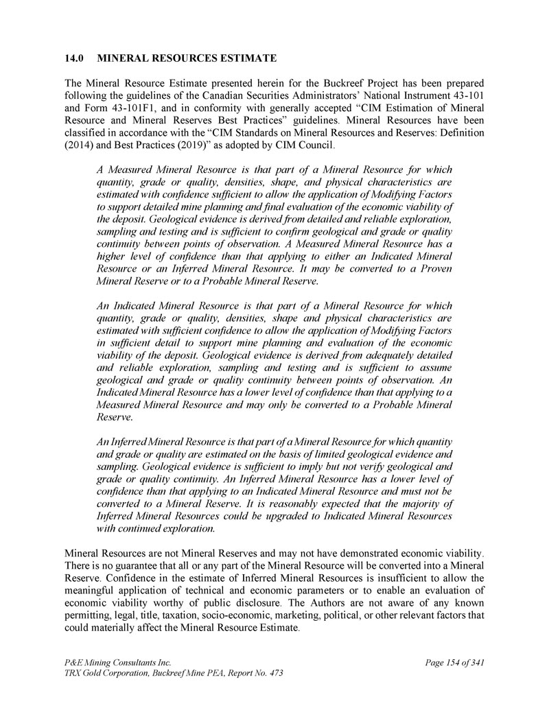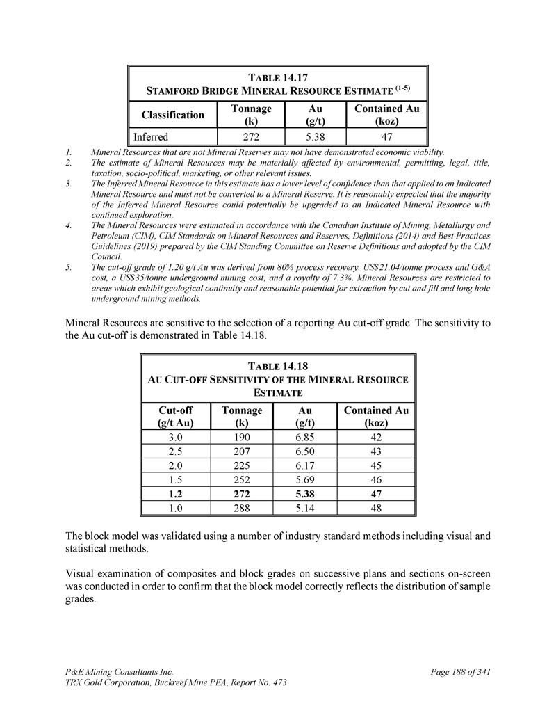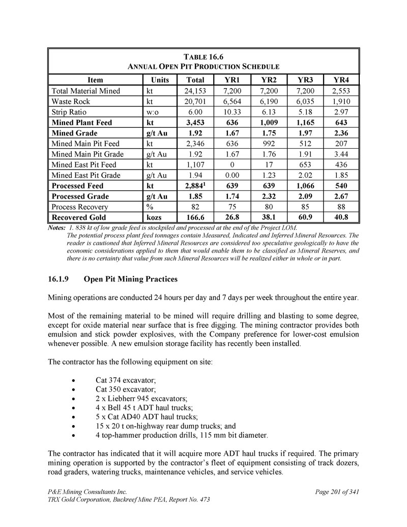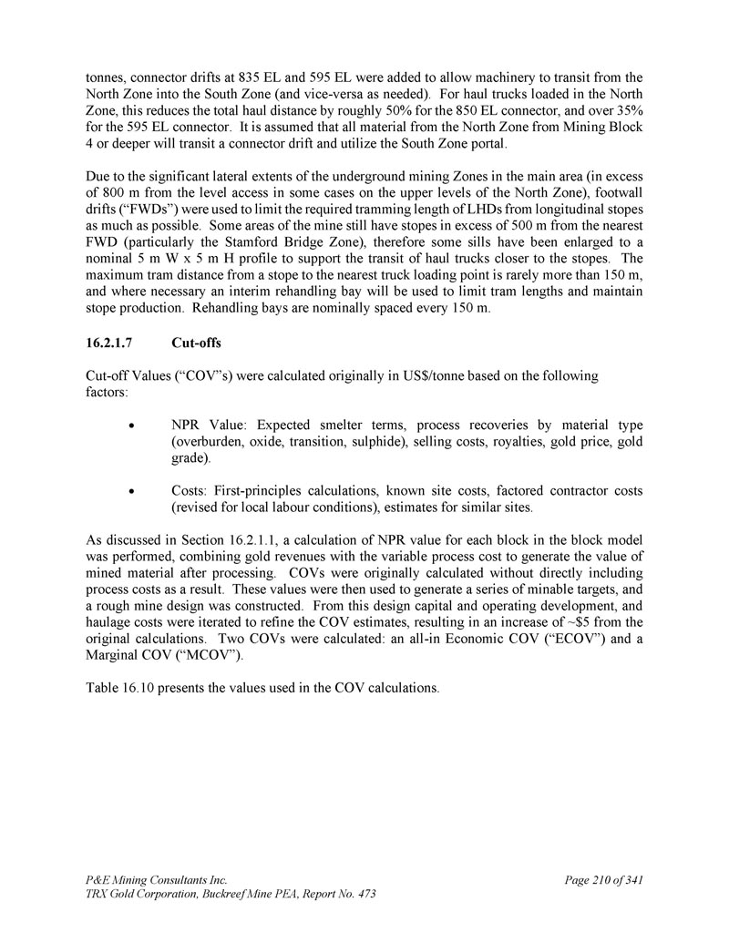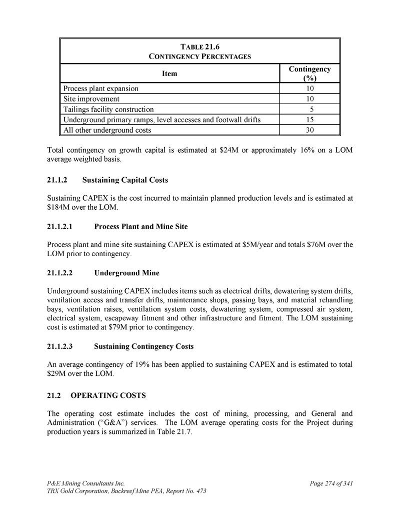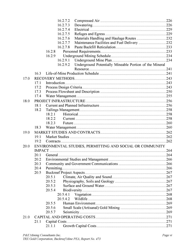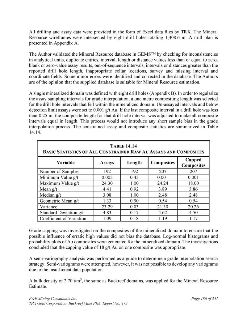 P & E Mining Consultants Inc. TRX Gold Corporation,Buckreef Mine PEA,报告第473期第314页,共341页