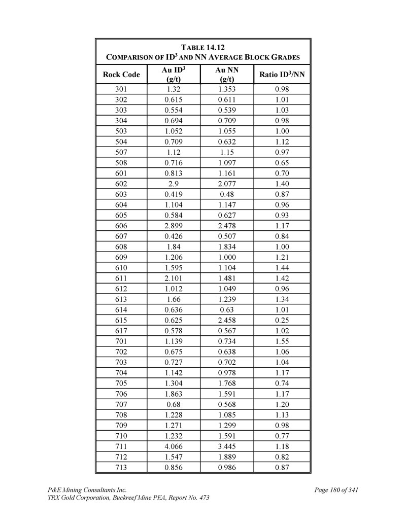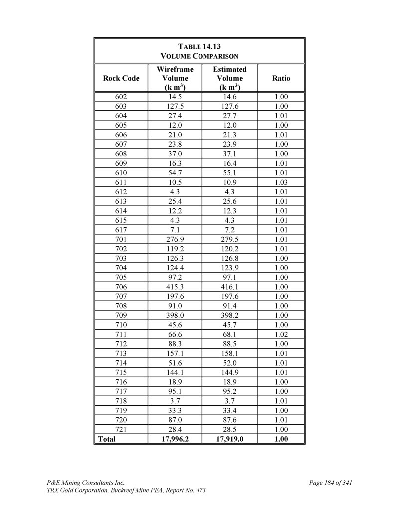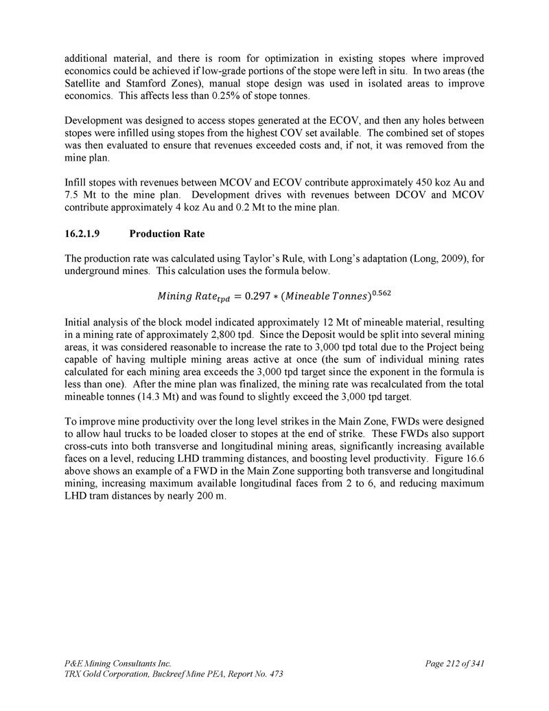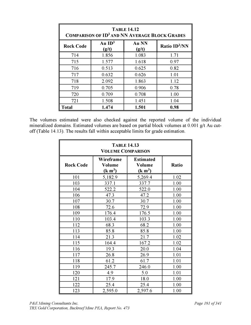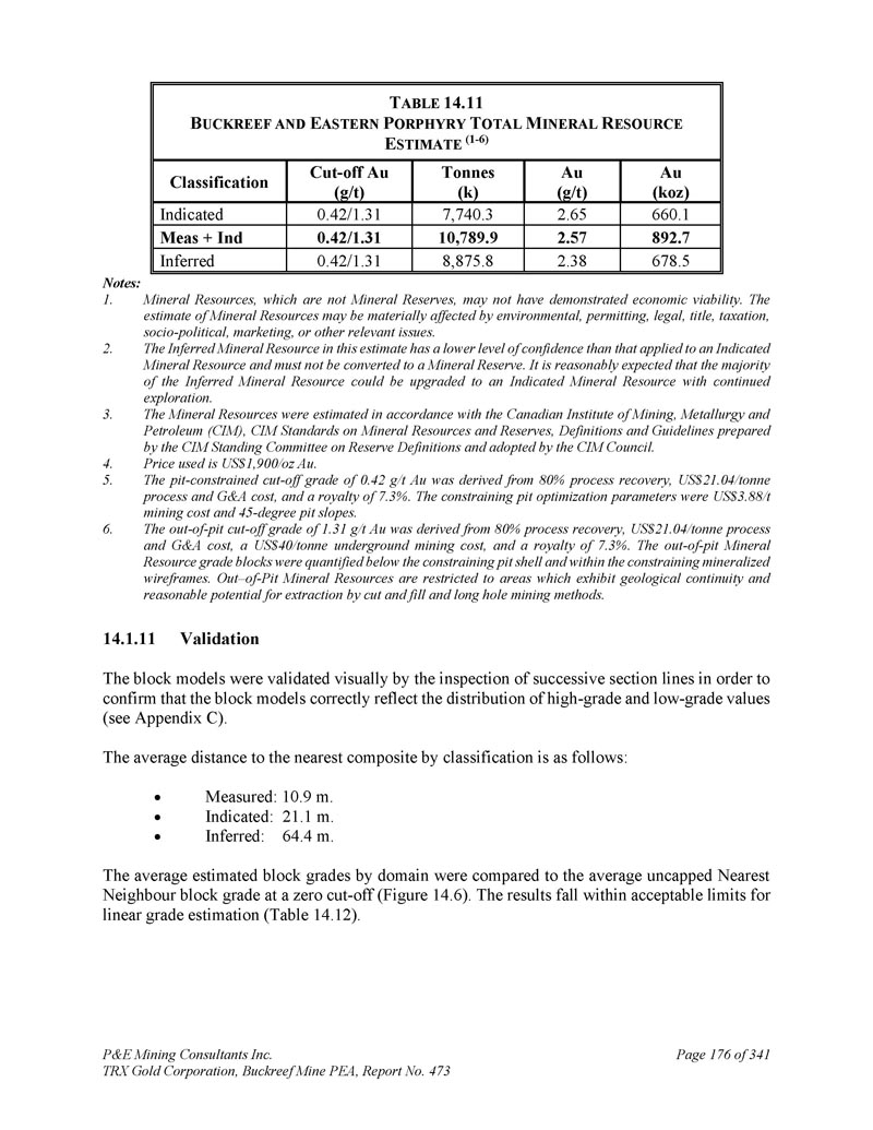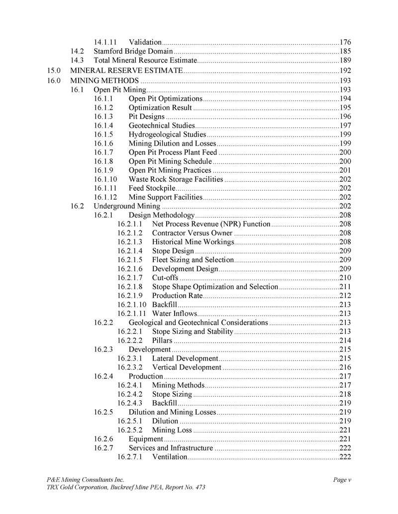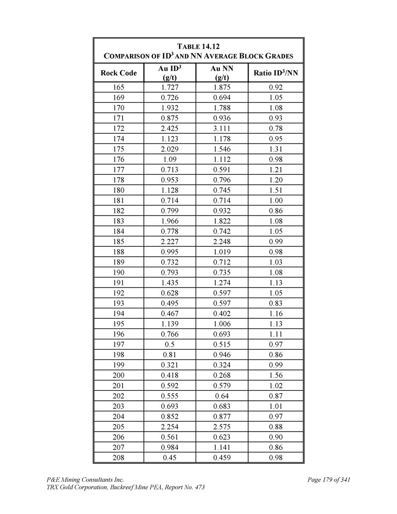 P & E Mining Consultants Inc. TRX Gold Corporation,Buckreef Mine PEA,报告第473期第314页,共341页