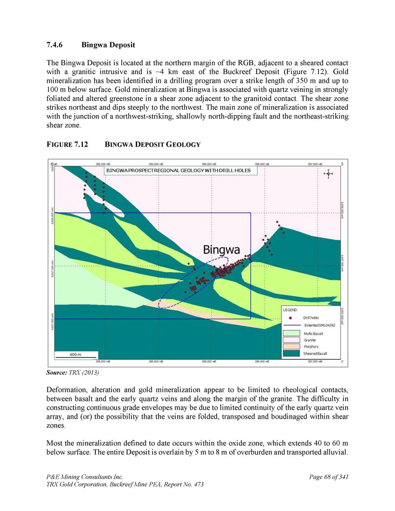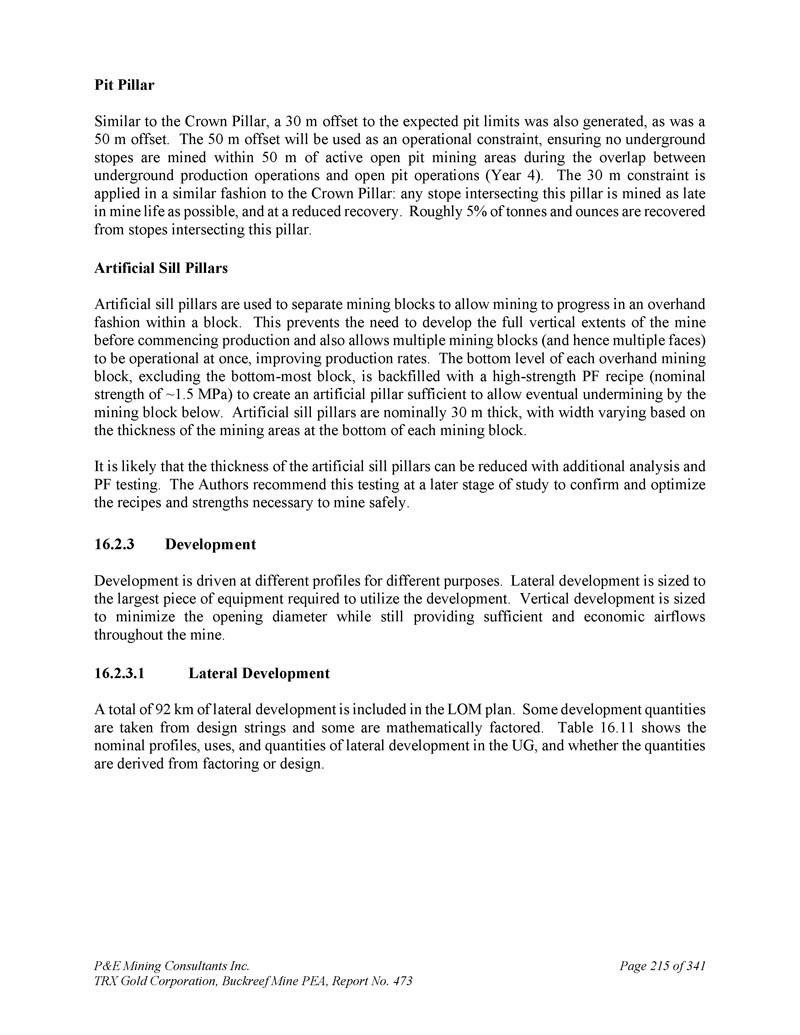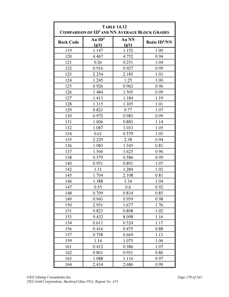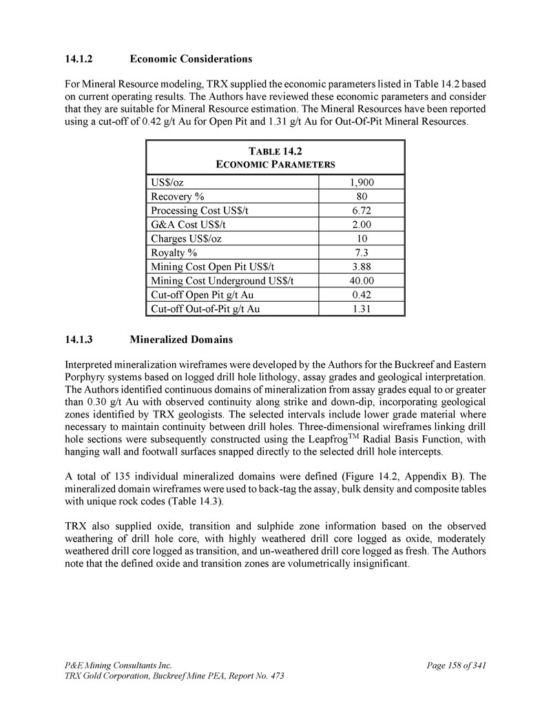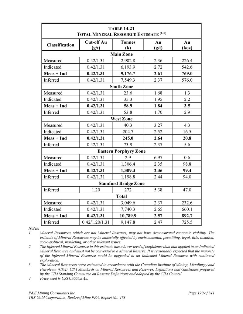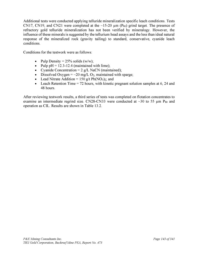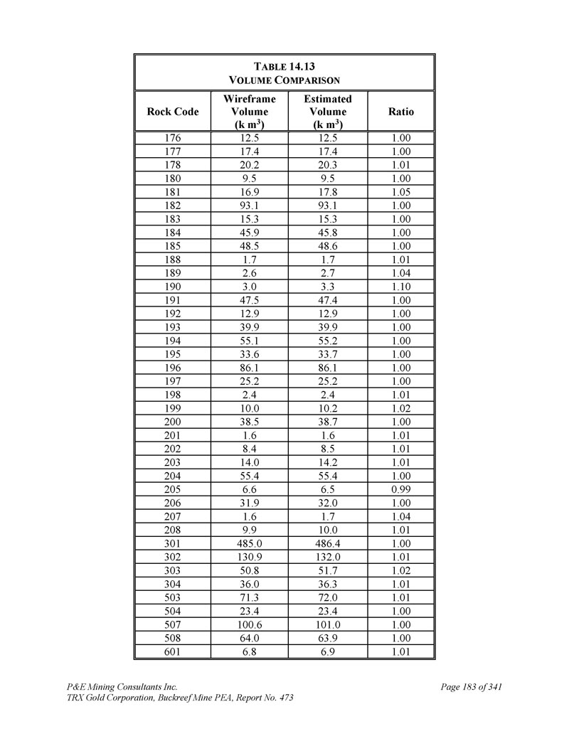 P & E Mining Consultants Inc. TRX Gold Corporation,Buckreef Mine PEA,报告第473期第314页,共341页
