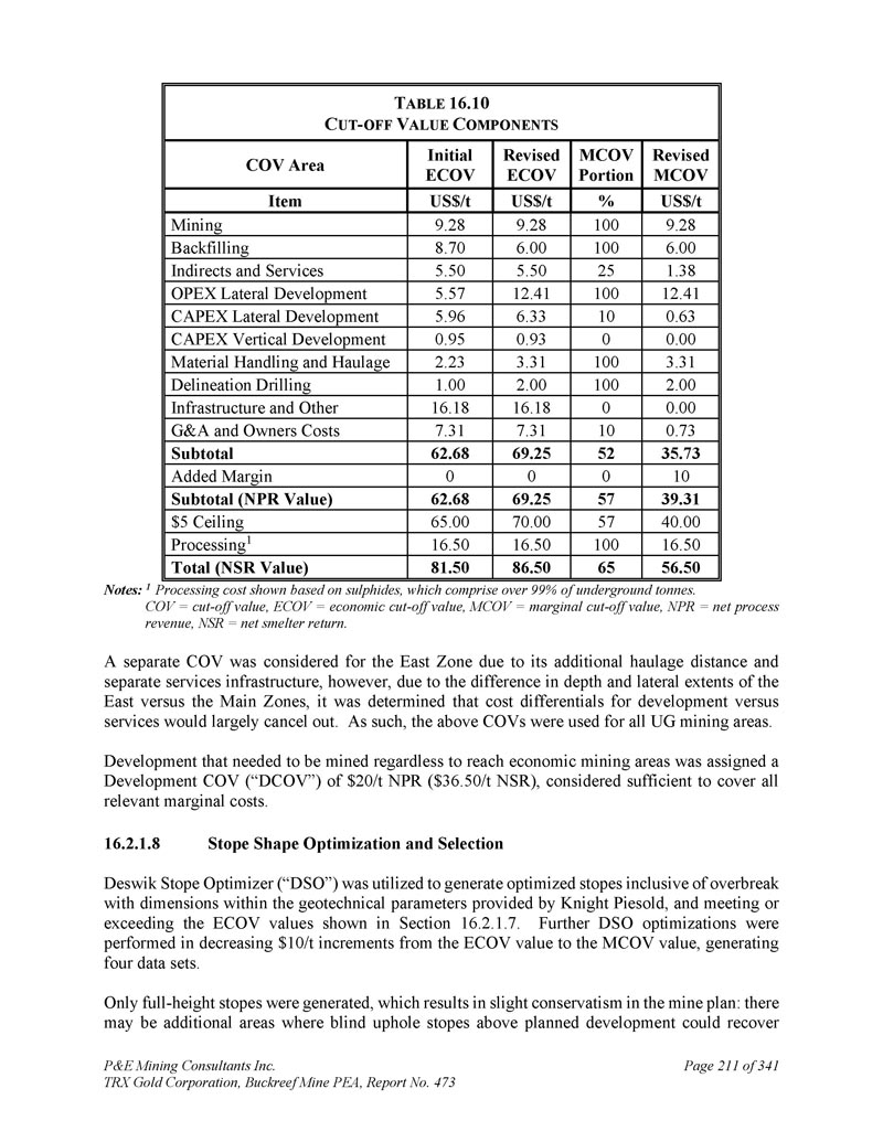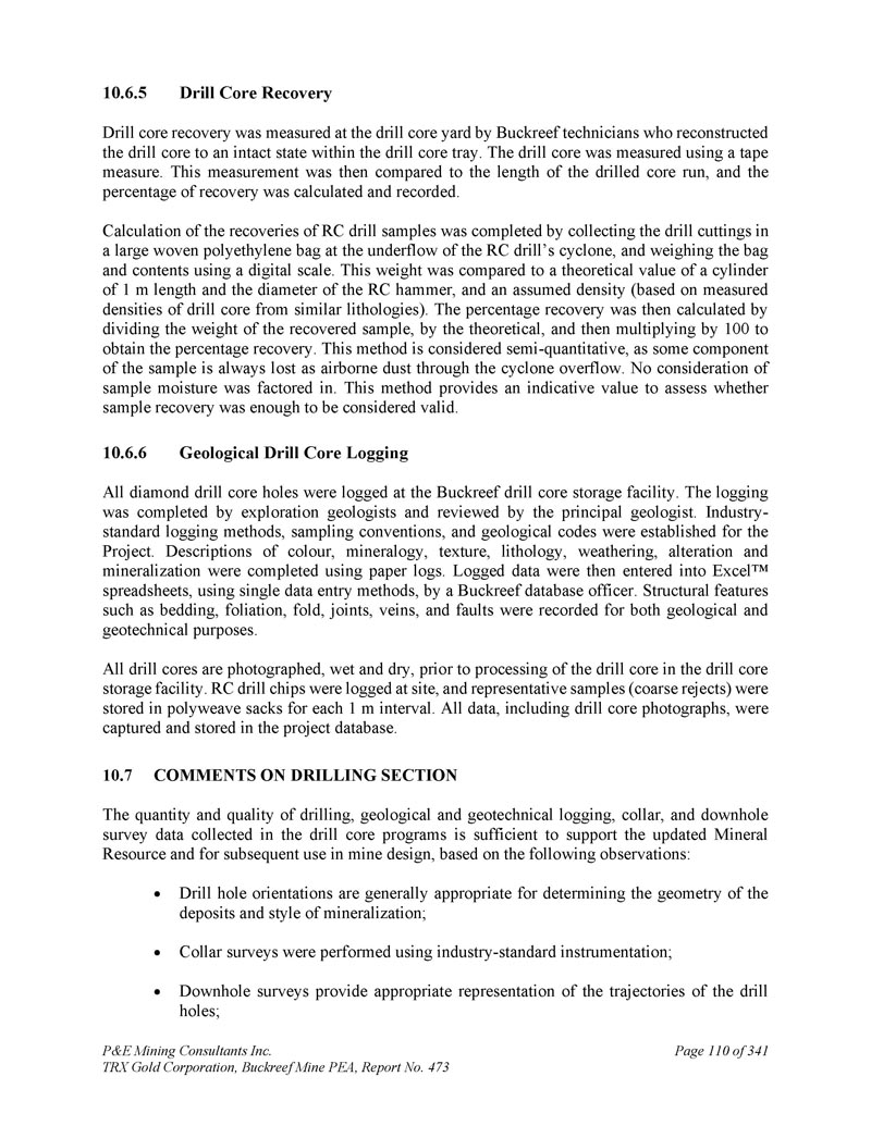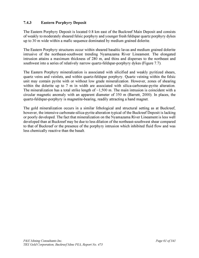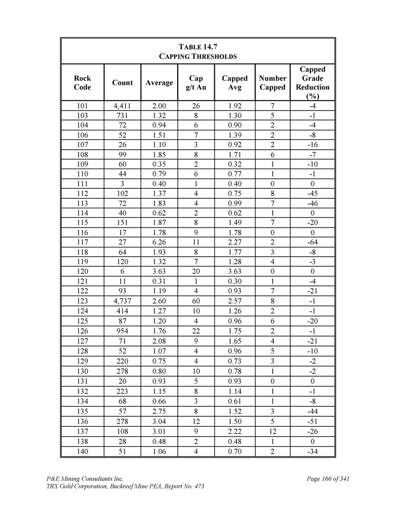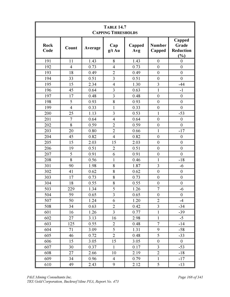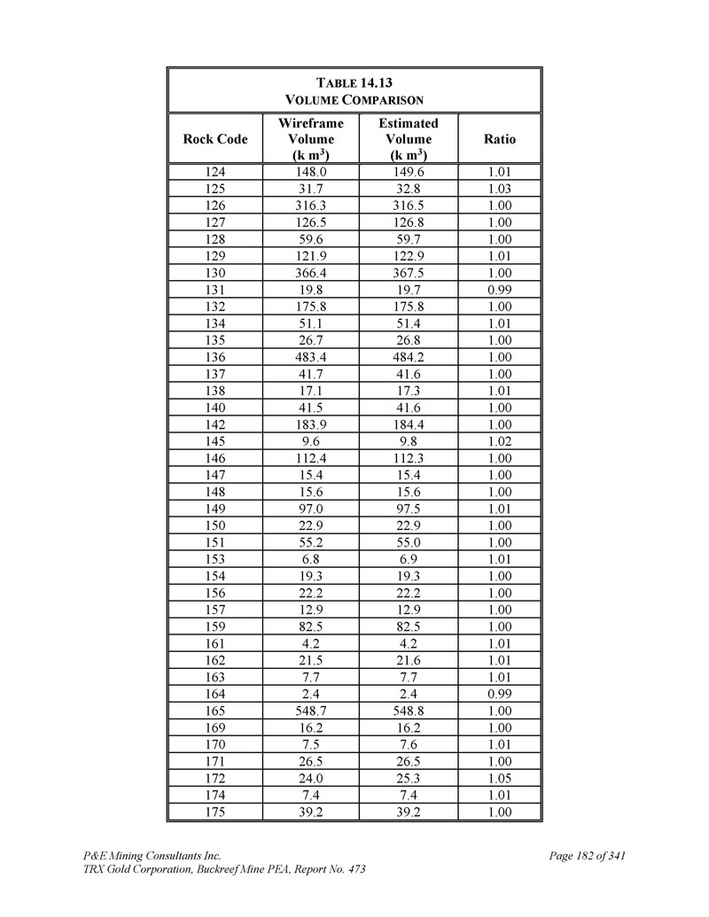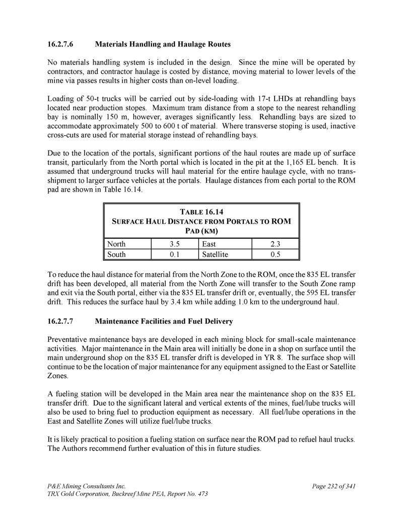 P & E Mining Consultants Inc. TRX Gold Corporation,Buckreef Mine PEA,报告第473期第314页,共341页