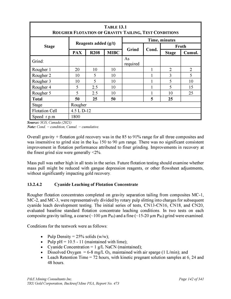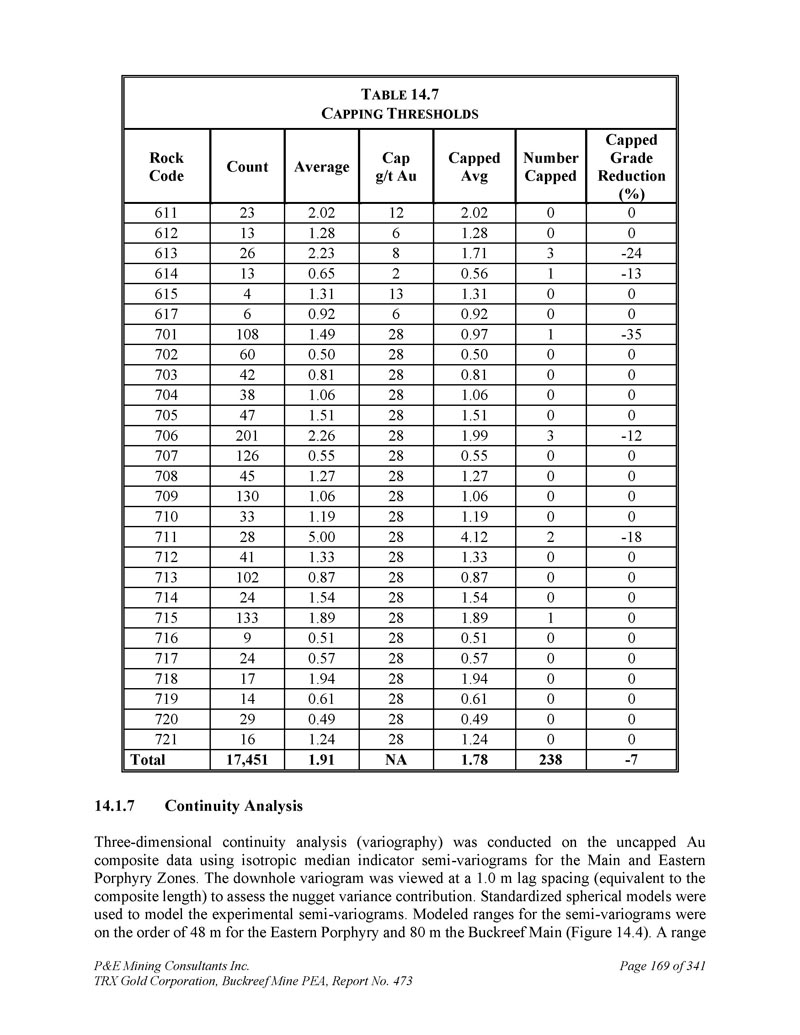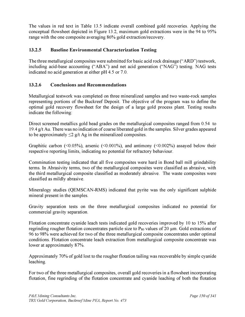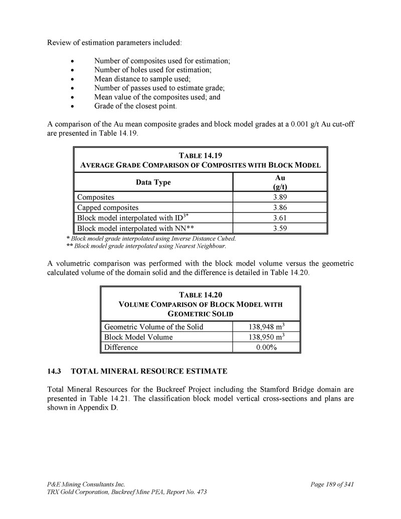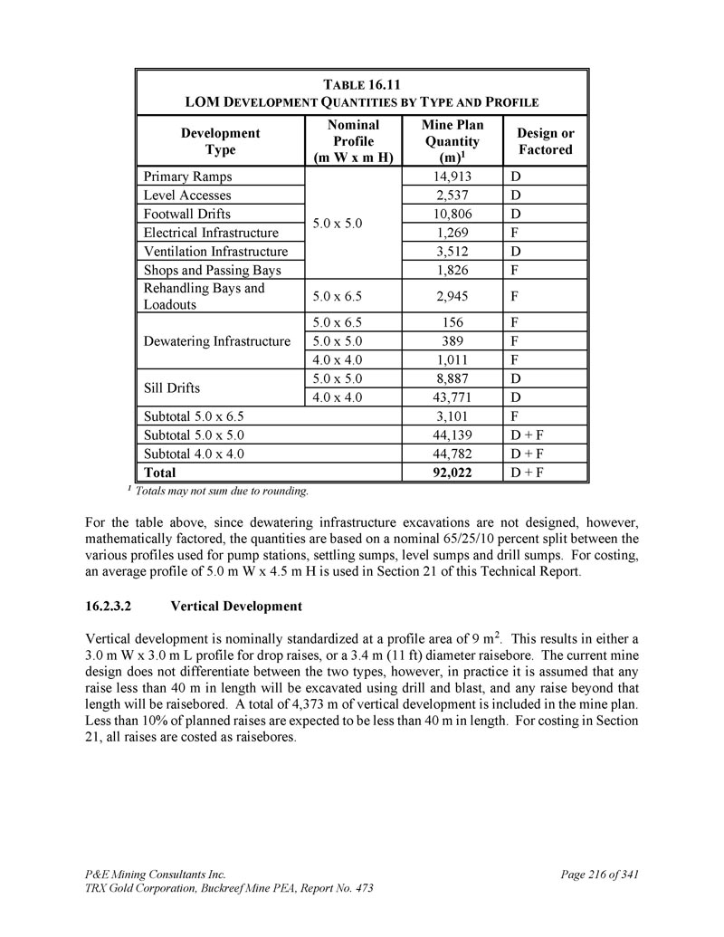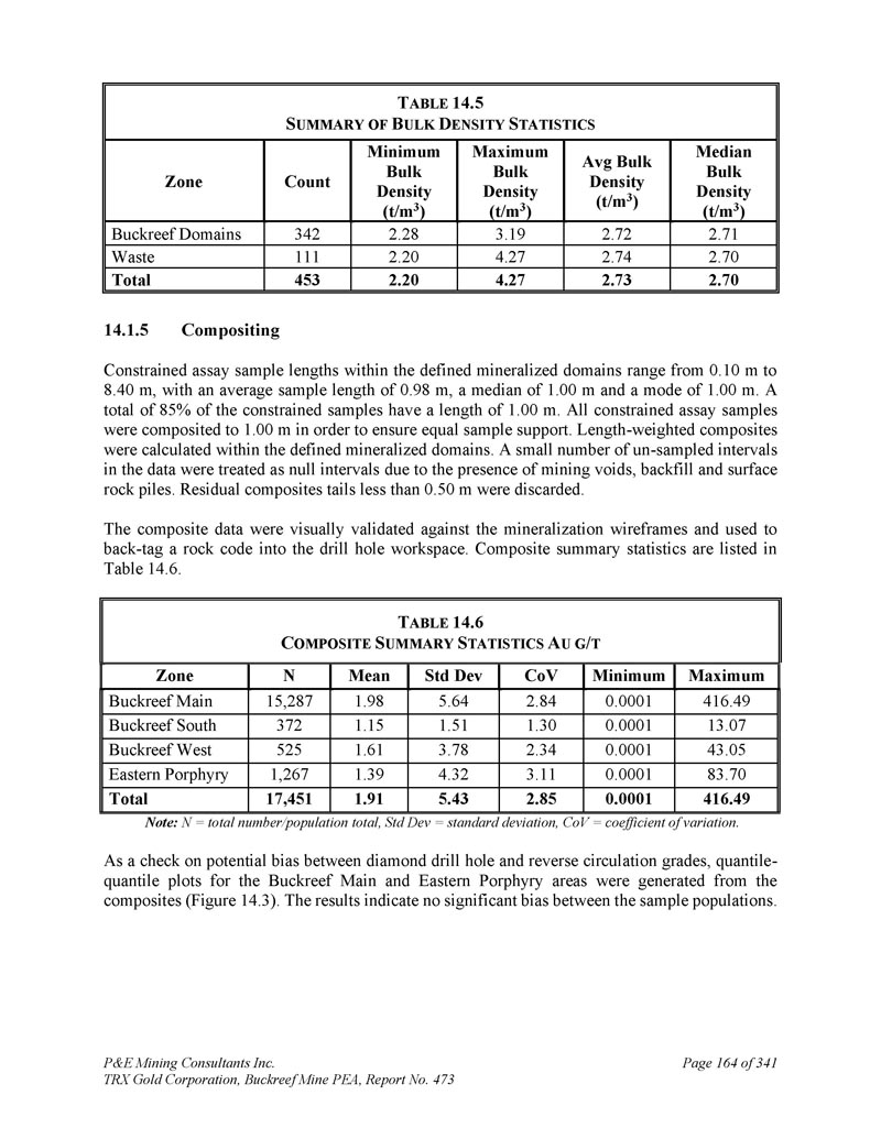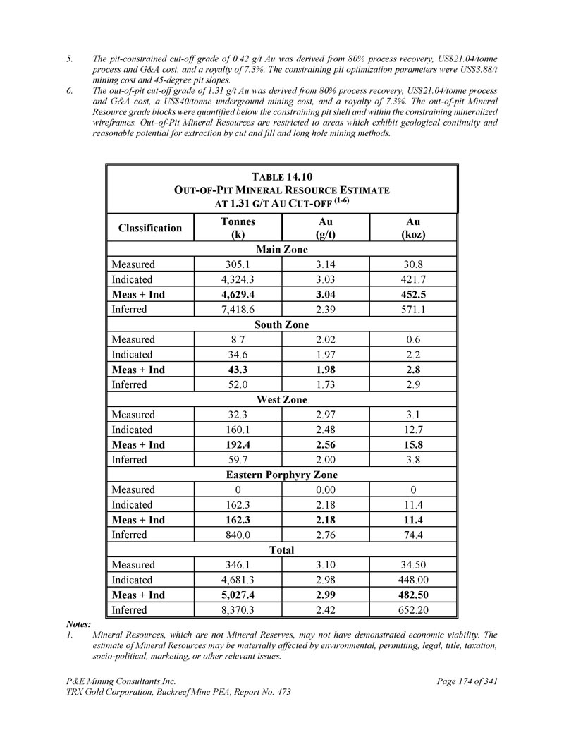 P & E Mining Consultants Inc. TRX Gold Corporation,Buckreef Mine PEA,报告第473期第314页,共341页
