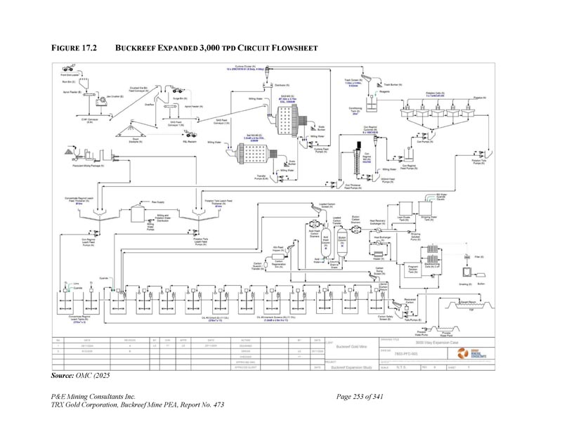 F IGURE 17.2 B UCKREEF E扩大3,000 TPD C IRCUIT F LOWSHEET资料来源:OMC(2025 P & E Mining Consultants Inc. TRX Gold Corporation,Buckreef Mine PEA,报告第473期,共341页第253页