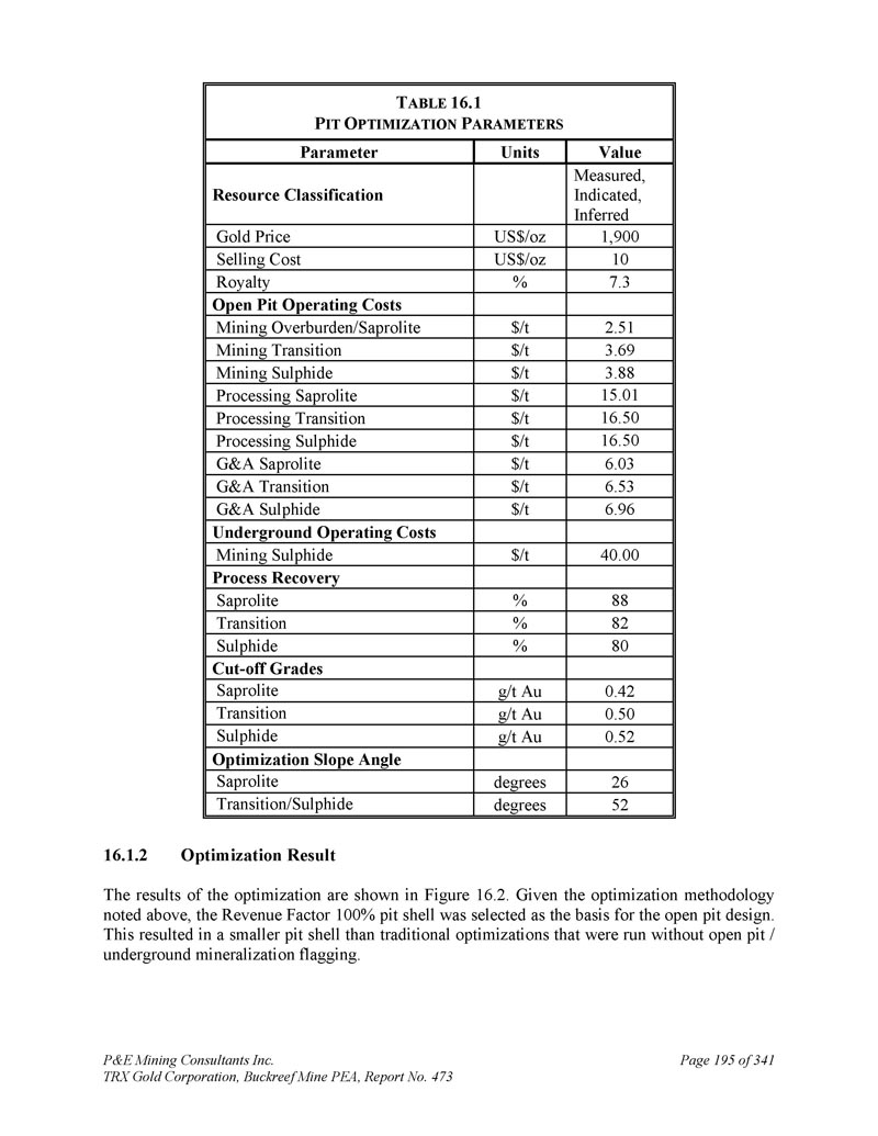 P & E Mining Consultants Inc. TRX Gold Corporation,Buckreef Mine PEA,报告第473号第340页,共341页附录E优化矿壳