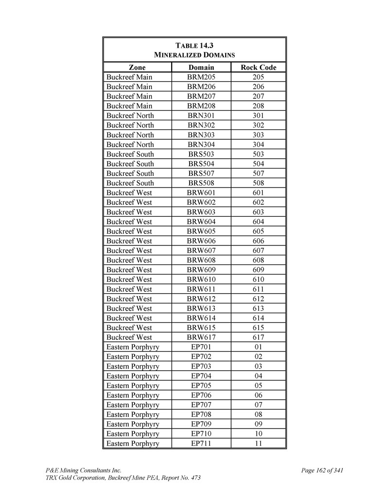 P & E Mining Consultants Inc. TRX Gold Corporation,Buckreef Mine PEA,第473号报告,第313页,共341页附录B3-D DOMAINS
