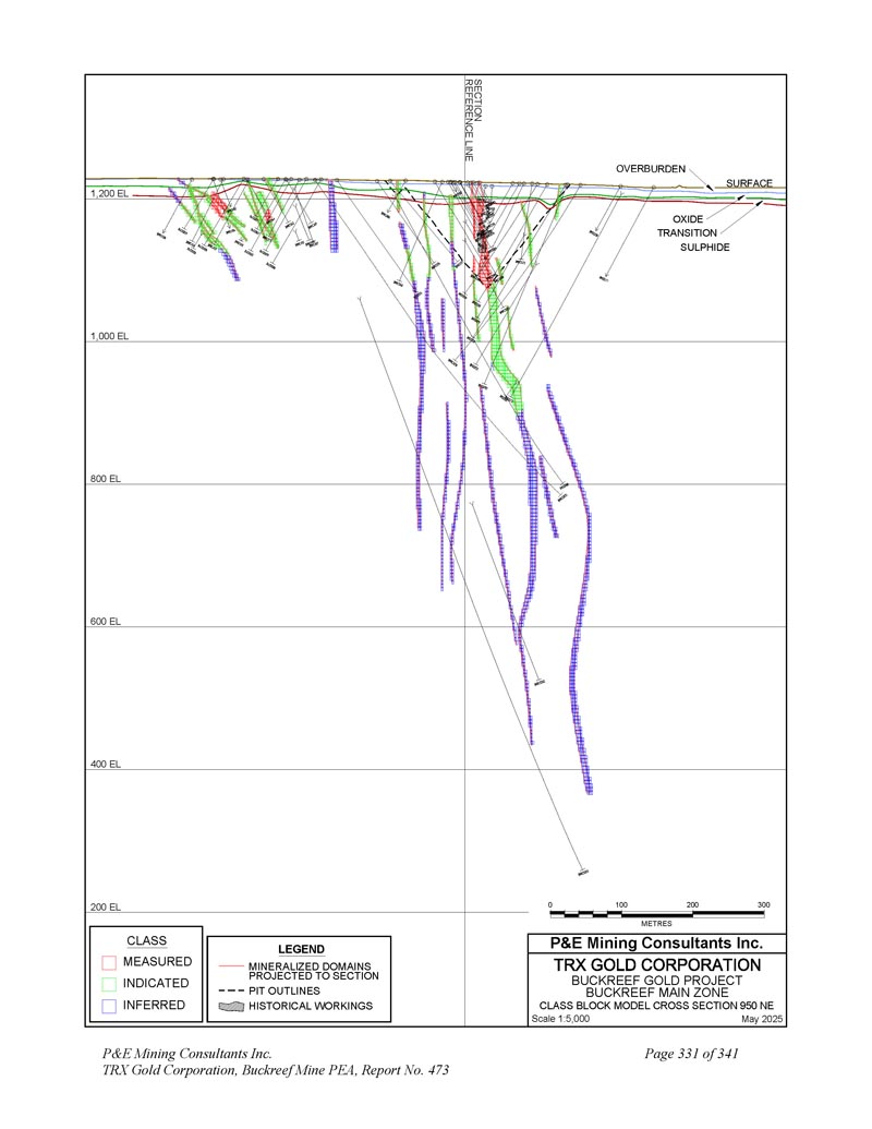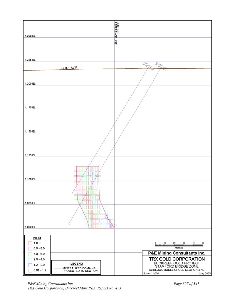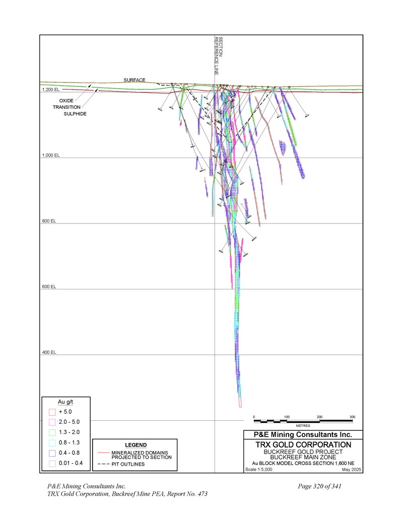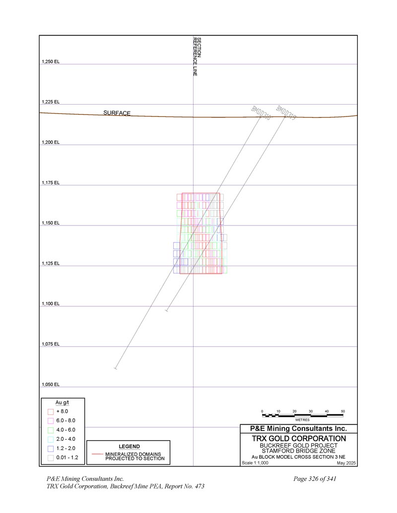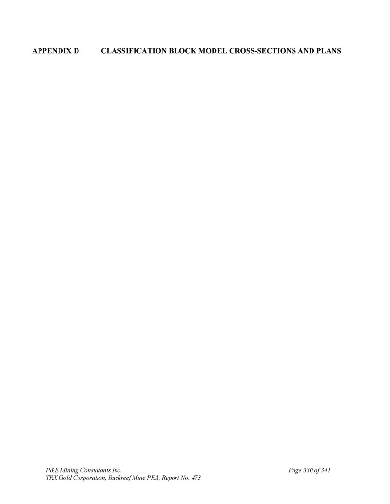 P & E Mining Consultants Inc. TRX Gold Corporation,Buckreef Mine PEA,报告第473号第341页附录D分类块模型交叉-章节和计划