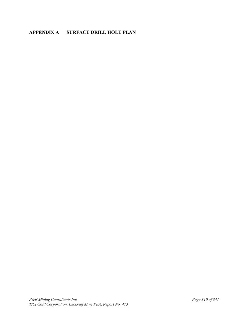 P & E Mining Consultants Inc. TRX Gold Corporation,Buckreef Mine PEA,第473号报告第310页,共341页附录A表面钻孔计划