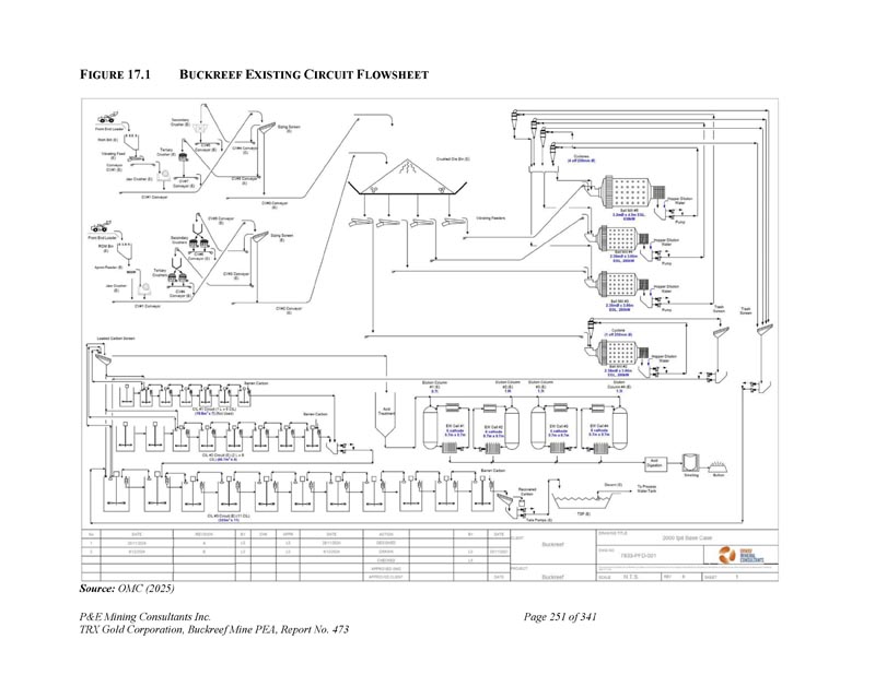 F IGURE 17.1 B UCKREEF E XISTING C IRCUIT F LOWSHEET资料来源:OMC(2025)P & E Mining Consultants Inc. TRX Gold Corporation,Buckreef Mine PEA,第473号报告,共341页第251页