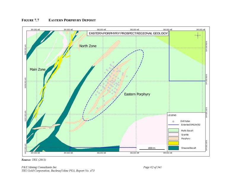 F IGURE 7.7 E ASTEN P ORPHYRY D ESPOSIT来源:TRX(2013)P & E Mining Consultants Inc. TRX Gold Corporation,Buckreef Mine PEA,报告第473页,共341页