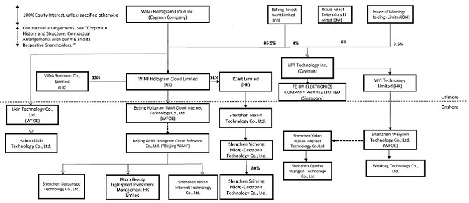 于2020年8月21日,WIMI HK于香港成立合营公司VIDA SEMICON CO.,LIMITED(“VIDA”)及WIMI HK于VIDA拥有53%股权。VIDA的成立是为了开发全息AR技术在半导体工业中的应用。
