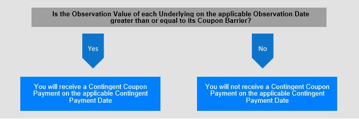 如果在任何一个月的观察日,每个如果标的债券大于或等于其票息障碍,我们将在适用的或有支付日(包括到期日)支付每1,000美元票据本金9.167美元的或有票息付款(相当于每月0.9 167%或每年11.00%的利率)。 |
