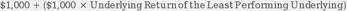 每1000美元本金的票据,1000美元。如果每个标的在相应观察日的观察值大于或等于其息票障碍,则提前赎回金额还将包括适用的或有息票支付。 |