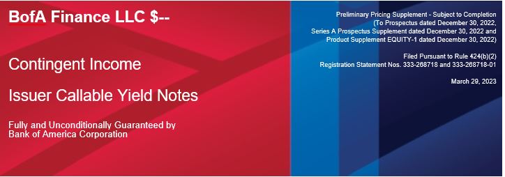 | ● | 与纳斯达克100指数表现最差挂钩的或有收益发行人可赎回收益债券®罗素2000指数®指数和SPDR®标普®区域银行ETF,到期2025年4月30日(《说明》)预计价格2023年4月25日及预计将于2023年4月28日。 |