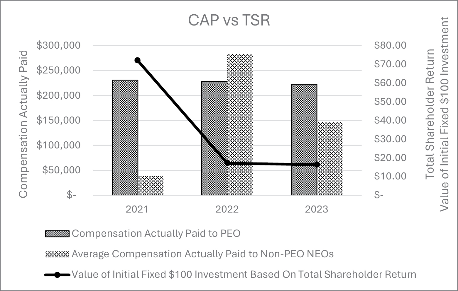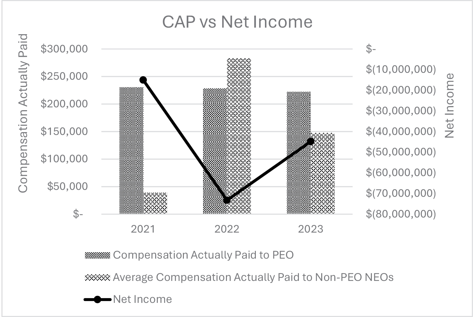 下图列出了实际向我们的PEO支付的薪酬、实际向我们的非PEO NEO支付的薪酬的平均值以及公司在2021年至2023年三个财年期间的净亏损之间的关系。